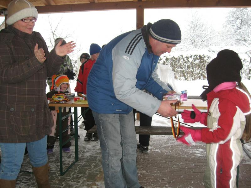 Auf den Wegen am Sankt-Georg waren die Flächen allerdings für all jene freigemacht worden, die zum Anfeuern gekommen waren. Bei heißen Getränken in gemütlicher Runde tummelten sich Familienangehörige, Freunde und Bekannte der Starter, interessierte Bürger ebenso wie viele Mitglieder vom Sportverein Sankt Georg. Streckenposten, insgesamt zehn Männer und Frauen, waren an der zuvor abgesteckten Laufbahn über 1,3 Kilometer im Einsatz.