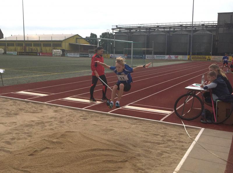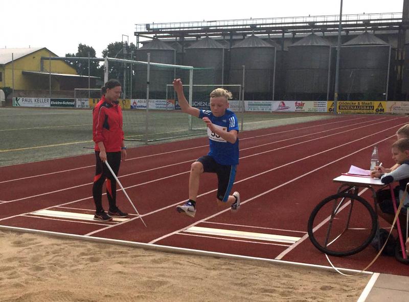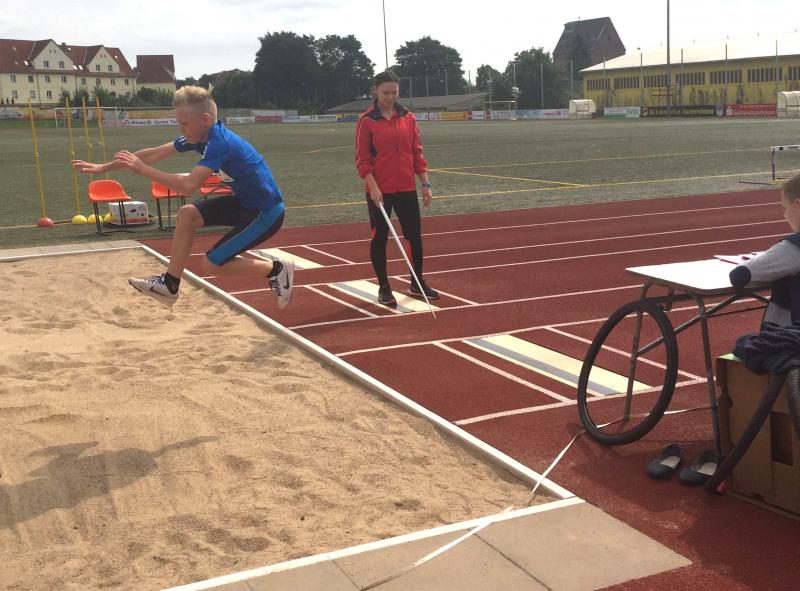 Marc Krüger, der schon eine Woche zuvor in Wolmirsleben gute Ergebnisse erzielte, versuchte hier, weitere persönliche Bestleistungen abzuliefern. Das gelang ihm dann auch im 50m Lauf mit 8,42 Sekunden und im Ballwurf mit 25,00 Metern. Im Weitsprung erwischte er den Absprung nicht optimal und blieb mit 3,64 Metern weit unter seiner Bestmarke. Am Ende standen für ihn 856 Punkte im Dreikampf zu Buche, Rang fünf. Den 800m Lauf absolvierte Marc zusammen mit Startern anderen Altersklassen und verbesserte sich gegenüber Wolmirstedt auf 3:12,71 Minuten. Dafür konnte er die Goldmedaille in Empfang nehmen.