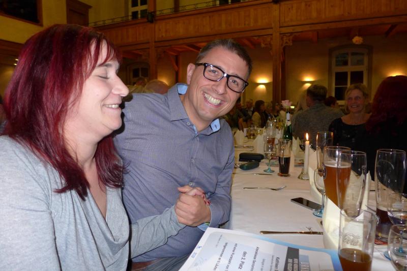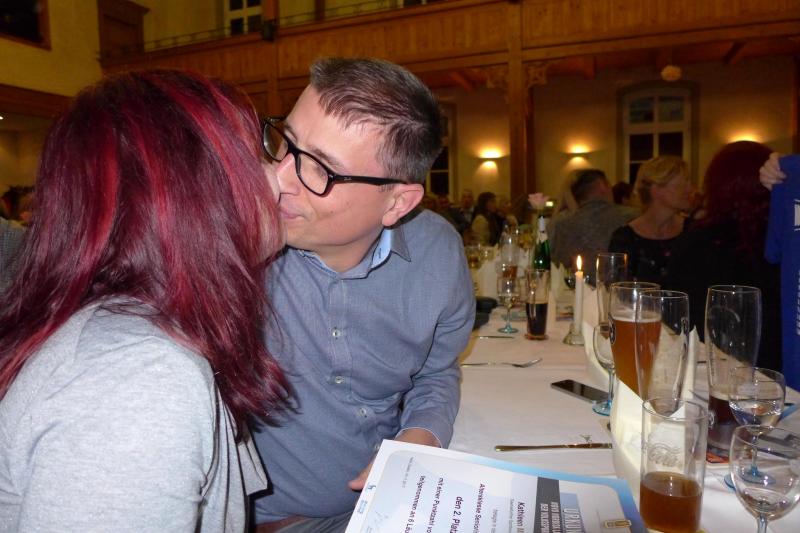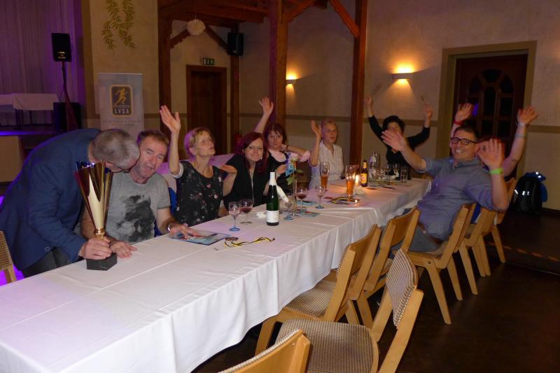 An richtiger Adresse, weil auf der anderen Flussseite, warteten derweil die rund 100 Hauptakteure der Ehrungsveranstaltung zum diesjährigen Novo Nordisk-Landescup und scharrten mit den Hufen, beziehungsweise Laufschuhen über das Parkett des Gasthofes Rautenkranz. „Unter uns Läufern ist es wie in einer echten Familie. Da wird auch gewartet, bis das Oberhaupt am Tisch sitzt“, erklärte ein augenzwinkernder Andreas Broska, Laufwart und Vizepräsident Breitensport. Und tatsächlich: Noch bevor es sich die Ungeduld im Saal so richtig gemütlich machen konnte, trat das zuvor vermisste Oberhaupt zur Tür herein.