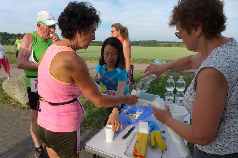 Kurz darauf folgte Kirsten Geist als Gesamtsiegerin bei den Frauen. Bis auf Dirk Meier, der über die doppelte Streckenlänge antrat, waren alle Gaensefurther ausnahmslos auf der Kurzdistanz unterwegs. Der Grund für den Schongang lag an der geplanten Teilnahme zum 2. Bernburger Halbmarathon, der bereits am nächsten Morgen anstand. Während ein paar Bode-Runner lieber ihren Kohlenhydratspeicher bei der ausgeschriebenen Nudelparty in Bernburg füllten, wagten die anderen das Lauf-Experiment zweier Starts in so kurzen Abständen.