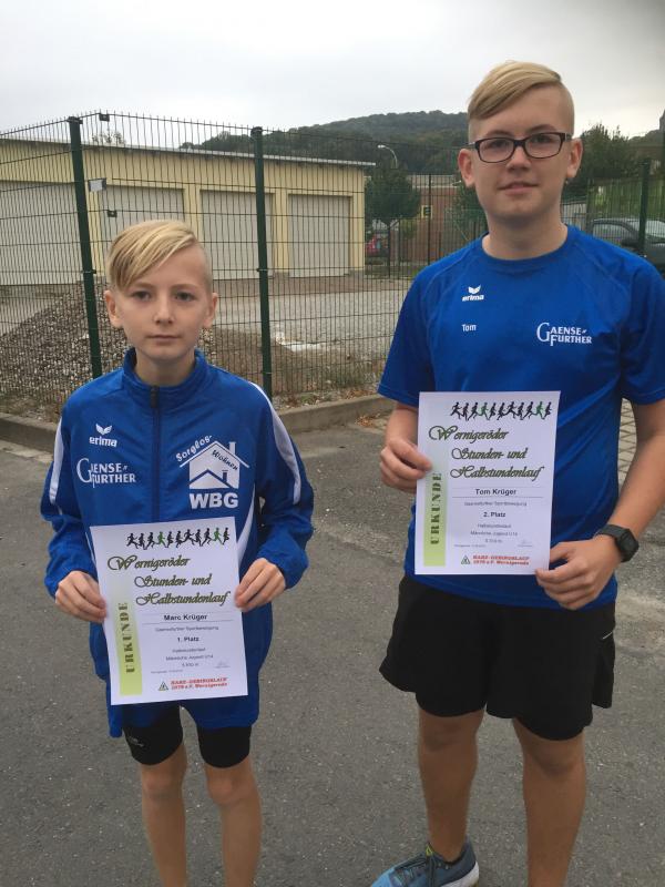 Marc und Tom Krüger (mJU14) von der Gaensefurther Sportbewegung haben kürzlich ihr Training etwas anders verbracht. Für die Brüder ging es zum Stunden- und Halbstundenlauf nach Wernigerode. Beide entschieden sich für den Halbstundenlauf. Leider waren insgesamt nur noch ca. 30 andere Läufer gemeldet.