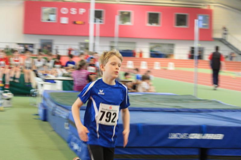 Sonnabend ging nur Nele in der Altersklasse 9 ( Ak ) im Dreikampf ( 50 Meter, 400 Meter, Weitsprung ) an den Start. " Sie war gut, außer im Weitsprung, da hat sie ein bisschen geschwächelt ", sagte Rösler. Die 50 Meter legte sie in 9, 17 Sekunden zurück. In 98, 09 Sekunden überquerte Nele die Ziellinie über die 400 Meter. Im Weitsprung leistete sie sich gleich zu Beginn zwei Fehlversuche. " Daher hat sie im dritten nur einen Sicherheitssprung gemacht. " Mit 717 Punkten erreichte sie in einem sehr großen Teilnehmerfeld den 38. Platz.