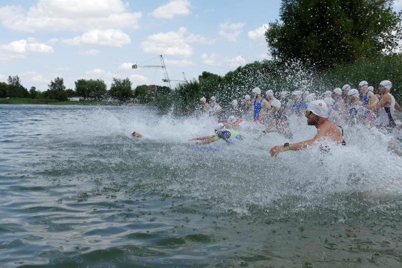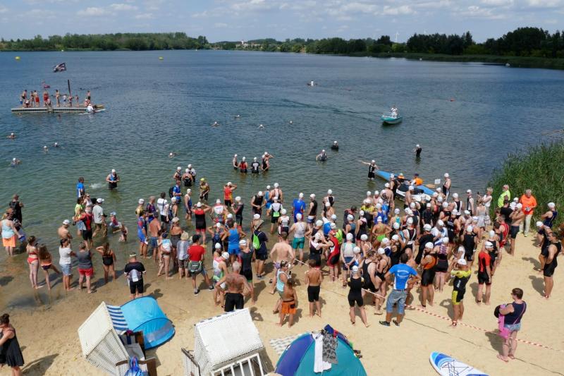 Triathlon, dass heißt, Spaß am Ausdauersport, an der Bewegung im Freien und an Multisport. Dass das gesund ist, merken immer mehr junge Sportler und vor allem Junggebliebene. So konnte das Triathlon-Team rund um Steffen Schöler erfreulicherweise einen großen Zuwachs bei diesem Wettkampf verzeichnen. Viele probierten sich zum ersten Mal aus. Viele kamen aus dem Salzlandkreis. Geduldig erklärten die Damen in der Anmeldung, was alles zu beachten war und wie die Wechsel zwischen den Disziplinen erfolgen sollten. So war es natürlich kein Wunder, dass das Feld beim Schwimmen weit auseinandergezogen war. Die versierten Triathleten oder Schwimmspezialisten übernahmen beim Kraulen leicht die Spitze. Die Brustschwimmer, ungefähr die Hälfte der Sprinter, folgten. Auch ein Rückenschwimmer wurde gesichtet. Alle hatten zwar recht warmes Wasser,aber dafür gab es durch den böigen Wind doch einige Wellen. Hier die Richtung zu halten, fällt schon schwerer als im Schwimmbad. Nach dem Verlassen des Wassers standen überall Helfer bereit, um die Richtung vorzugeben und anzufeuern. Beim Wechsel auf das Rad und zum Laufen verziehen die Kampfrichter schon mal, wenn man versuchte, den falschen Ausgang zu nehmen. Nach 500m Schwimmen, 21km Rad und 5km Laufen kamen alle Sportler erfolgreich ins Ziel. Hier die erfolgreichsten: Sieger bei den Männern war Alexander Burghardt (m30) von den Trimagos Magdeburg in 1:01:32h und bei den Damen siegte Catharina Stanik m40 von Hawk Lake Runners in 1:12:55h. Auch die Läufer der Gaensefurther Sportbewegung gingen hier an den Start. Der schnellste war von ihnen Rinaldo Schiele (m30). Er kam nach 1:14:06 h ins Ziel.