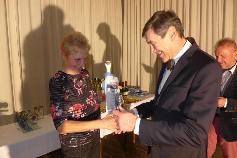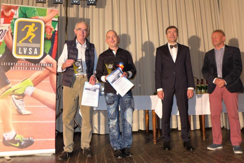 Ausgezeichnet wurden in den einzelnen Altersklassen jedoch alle, die mit vier oder mehr Teilnahmen den Sprung in die Cup-Wertung geschafft haben. Aus den Händen von Andreas Broska, Laufwart und Vizepräsident Breitensport im Leichtathletik-Verband Sachsen (LVSA), der wie gewohnt gemeinsam mit Bernd Ebert durch den Abend führte, sowie LVSA-Präsident Gerry Kley und Helmut Zausch, Mitglied der Fachkomission Lauf im LVSA, gab es die begehrten Medaillen und Urkunden, beziehungsweise den Pokal für die Erstplatzierten. „Dazu haben wir uns in diesem Jahr entschieden, statt der gewohnten Teilnehmer- T-Shirts einen Landescup- Schlauchschal an die Qualifizierten zu vergeben. Das kam gut bei den Teilnehmern an und hat in der kalten Jahreszeit auch einen praktischen Nutzwert“, erklärte Broska.