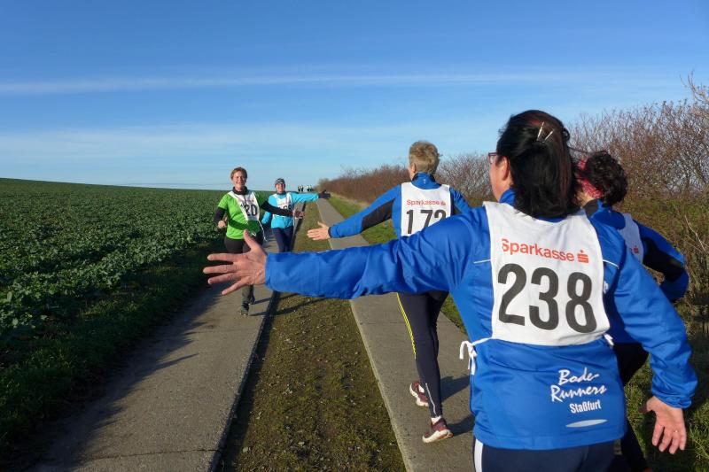 Alle Starter über sechs Kilometer fanden, nach einem kleinen, versehentlichen Abstecher der drei Führenden, dann den richtigen Abzweig hinaus aus Aderstedt, Richtung Autobahn A14, vorbei am „Bullenstedter Brocken“. Da waren im Vorjahr noch sieben Kilometer zu bewältigen. Auf Grund des schlechten Untergrundes hatte das Organisationsteam die Strecke um einen Kilometer gekürzt. Allen Genussläufern, die noch den vorbeisausenden Fahrzeugen von der Autobahnbrücke zuwinkten, kamen die ersten „Rückläufer“ schon recht früh wieder entgegen. Mit im Feld der führenden Männer war auch Dirk Meier von der Gaensefurther Sportbewegung. Am Ende musste er nur Gunnar Falke aus Calgary (Kanada) den Vortritt lassen. Der Ex-Bernburger war gerade auf Heimaturlaub und lief in Aderstedt mit einer Siegerzeit von 23:28 Minuten die sechs Kilometer zu Ende. Rang drei belegte kein Unbekannter - Peter Teutloff aus Aschersleben holte sich die Lorbeeren. Bei den Frauen liefen sogar zwei Bode-Runners auf das Treppchen! Sandra Homann nahm den Gesamtsieg mit nach Hause, Petra Becker konnte vor Karin Taraba vom PSV Bernburg den zweiten Platz für sich verbuchen. Für das leibliche Wohl war bestens gesorgt, so dass in gemütlicher Runde noch die vielen bevorstehenden Laufziele ausgetauscht werden konnten. Der Gast aus Kanada hatte am Ende nicht nur seine Finishermedaille im Gepäck. Auch eine Postkarte aus Aderstedt trat mit ihm die Heimreise an…