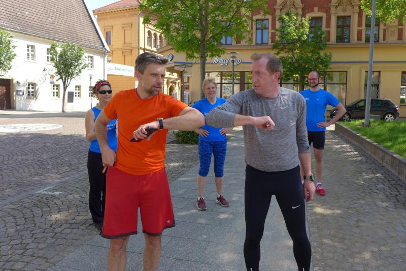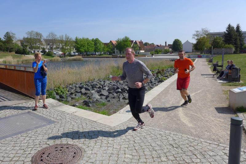 „Ein Signal geben“, wollte mit seiner Teilnahme am Erinnerungslauf auch der Staßfurter Oberbürgermeister. Mit Stadtwerke-Geschäftsführer Eugen Keller an der Seite umrundete Sven Wagner in großem Bogen den Stadtsee. Im September wolle er die zehn Kilometer-Distanz in Angriff nehmen, kündigte der OB an. Mit „Staßfurt bewegt sich mit Augenmaß und Abstand“ will Wagner auch den Optimismus weitergeben, den er zuvor bei Gewerbetreibenden in der Steinstraße vernommen habe. Das Leben gehe langsam wieder in Normalität über. Die ersten Sportvereine durften in der vergangenen Woche bereits wieder „kontaktfrei im Freien“ trainieren. ..