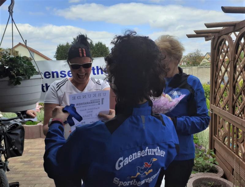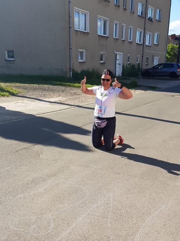 Kathleen Auer von der Gaensefurther Sportbewegung startete ihren ersten Halbmarathon in Hecklingen ganz alleine, ihren Mann als Fahrradbegleitung neben sich. Die Leistung ist nicht hoch genug einzuschätzen, da gerade im Alleingang so eine Distanz unglaublich schwer ist! In Gedanken waren die Lauffreunde natürlich an der Strecke dabei und hatten am Tag zuvor bereits Kreidebilder zur Motivation auf ihre beabsichtigte Laufstrecke gemalt. Während für Auer eine kleine Abordnung Bode-Runners den überglücklichen Zieleinlauf am heimischen Tor vorbereitet hatte, kamen auch in Bernburg alle Sportler guter Dinge in das Ziel. Einige ließen es sich nicht nehmen, nach den anstrengenden Kilometern ein abschließendes Bad in der Saale zu nehmen, was den Finishern beim echten Rennsteiglauf auf jeden Fall verwehrt geblieben wäre. Ein großes Lob für diese tolle Idee geht hiermit an den Rennsteiglaufverein! Alle Läufer hoffen, dass am 08. Mai 2021 wieder in „Schmiedefeld - dem schönste Ziel der Welt“ eingelaufen werden kann.