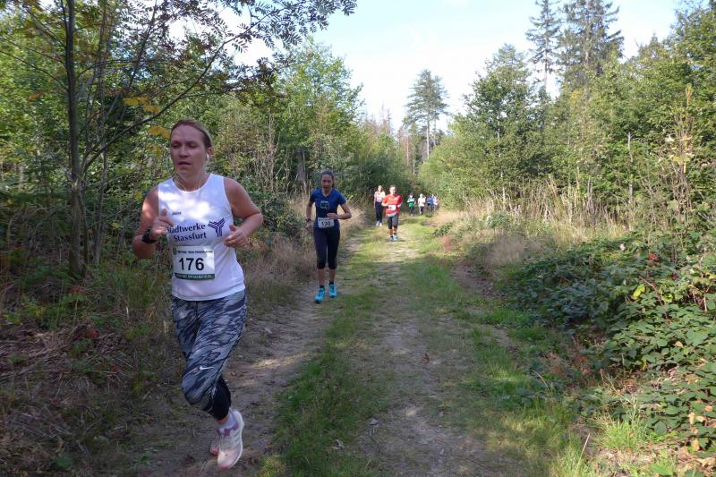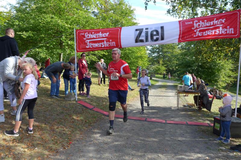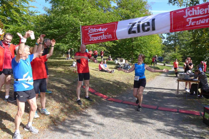 Auch Sandra Homann konnte erneut ihre gute Form vom Parchener Fiener-Crosslauf abrufen und siegte in Friedrichsbrunn in der Altersklasse W40. Im Zehn-Sekunden-Takt wurden die Läufer in Zehnerteams auf die Strecke geschickt, so dass sich im Startbereich keine Menschenansammlung bilden konnte. Da die Läufer nach dem Alphabet sortiert waren, gehörten Olaf Bothe, Jens-Uwe und Sabine Börner gleich zum ersten Starterfeld. „Oh Nein, ihr werdet mich alle jagen!“, machte sich bei Börner ein mulmiges Gefühl breit. Doch ziemlich schnell hatten alle flinken Beine die Genussläufer überholt. Auf der herrlich waldreichen Strecke ging es über zwei Fünf-Kilometer-Runden ordentlich hoch und runter. „Durchlaufen, nur nicht gehen!“, war das ausgemachte Ziel von Börner, was Atmung und Kreislauf gehörig ankurbelte. Böse nur, dass das Ziel bei Kilometer vier und acht bereits zum Greifen nahe war. Doch es ging noch einmal für fast zwei Kilometer in den Wald hinein und zwei Anhöhen wollten auch noch von den Läufern erklommen werden. Das gelang vielen gut und die langen Schatten deuteten den Vorauseilenden die nahende Bedrohung rechtzeitig an. Lag es nun an den tiefen Sonnenstrahlen die blendeten, an einem verpassten Wegweiser oder ganz einfach daran, dass Edgar Schmidtke keinen Läufer mehr vor sich hatte? Egal, auf jeden Fall ging es auf der ersten Runde nicht hinein nach Friedrichsbrunn! Schmidtke: „Es waren vielleicht 700 Meter die ich falsch gelaufen bin!“, resümierte der Bode-Runner. Spätestens auf dem Podest entspannte sich sein Gesicht aber wieder, denn trotz des Abstechers feierte der Finisher den zweiten Platz in der Altersklasse M55. „Auf die sechs Minuten Abstand zu Platz eins wäre ich nicht mehr rangelaufen!“, ist sich Schmidtke ziemlich sicher. Als dann noch Jens-Uwe Börner für den dritten Platz seinen Fotoapparat in fremde Hände geben musste, freute sich der Veranstalter WSV Grün-Weiß Friedrichsbrunn über den Jubel der Bode-Runners, die ihren beiden Lauffreunden lautstark Applaus spendeten. Schnell nahm er sein liebstes Gerät wieder an sich, sprintete doch Renate Liedtke nun auf das oberste Podest. Sie war zwar die Einzige in ihrer Altersklasse W65, hatte aber an diesem Tag alle geschlagen, die auf ihrer Couch liegen geblieben waren.