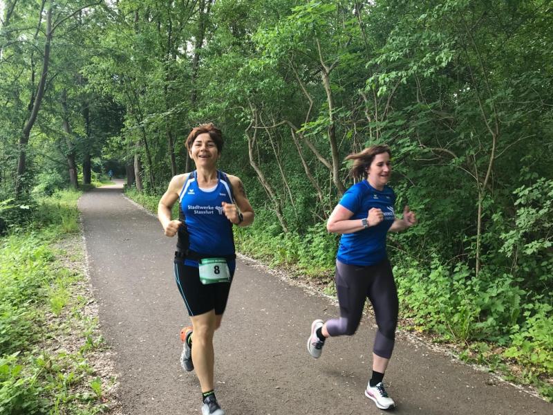 Zehn Starter der Bode-Runners liefen die Zwölf-Kilometer-Strecke, die entlang der Saale bis nach Gröna und wieder zurück führte. Die wald- und wasserreiche Laufstrecke forderte auch auf der „kurzen“ Strecke ihren Tribut. Umso schöner, dass die Organisatoren vorgesorgt hatten und die Verpflegungspunkte immer zur rechten Zeit kamen. „Durch die vielen schattigen Abschnitte war es dennoch gut auszuhalten und noch recht angenehm zum Laufen“, hielt GSB-Läuferin Janine Wuwer fest. Auch bei den Halbmarathonis, die noch ein wenig weiter die Saale entlang liefen, bevor sie ebendiese überquerten, waren die Verpflegungspunkte begehrte Flüssigkeitsspender. Auf diese 21,1 Kilometer wagten sich vier Bode-Runners.