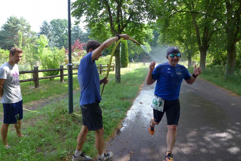 So ging es am vergangenen Wochenende neben einer Sechs- und einer Zehn-Kilometer-Wertung auch auf die Walkingstrecke, denn die Ihleläufer aus Burg hatten im Rahmen des Elbe-Ohre-Cups zum Bismarckturmlauf eingeladen. Vom PSV Sportplatz aus, lag die Stadt bald hinter den Startern und im dicht bewaldeten Bürgerholz, war der Stadionsprecher bald nicht mehr zu hören. Dafür surrten zahlreiche Mücken um die Läufer herum. Wohl dem, der im schnellen Laufschritt die lästigen Verfolger abhängen konnte. Dass es nach der coronabedingten Terminverschiebung bei sommerlich heißen Temperaturen die 30 Höhenmeter zum namensgebenden Turm hinauf gehen sollte, war untypisch, denn diesen Lauf kannten die Bode-Runners bisher nur aus der kalten Jahreszeit. Da halfen mitunter auch die motivierend antreibenden Zuschauer nicht, denn Hitze, Steigung und die zunehmende Streckenlänge forderten ihren Tribut. Doch bis zum Ziel war es nun nicht mehr weit, zudem ging es bergab, was für den nötigen Schwung bis in das Stadion sorgte. Zieleinlauf, trinken und dann der göttliche Rasensprenger, in dieser Reihenfolge belohnten sich die Finisher für die schweißtreibende Laufarbeit. Glücklich, allerdings reichlich zerstochen, beendete auch Börner ihre erste Walkingeinheit.