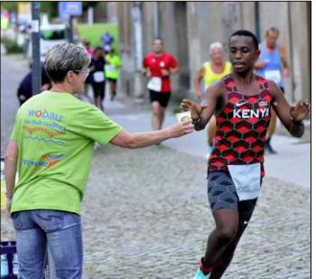 Einen störte das kaum: Robert Kimongo. Der Mann vom TSV Starnberg startete in der ersten Reihe. Es machte allerdings keinen Unterschied, ob vorne oder hinten. Durch die Zeitmessung lief der Timer erst, als die Läufer über die Matten liefen. Doch Kimongo wollte von Anfang an freie Sicht und schnell wurde auch klar, warum. Der Mann mit dem "Kenya"- Shirt machte von Beginn sofort Druck und spulte Kilometer für Kilometer ab. Den "Langen Kanten" absolvierte er in 35:42,5 Minuten und war somit zwei Minuten schneller als der zweitplatzierte Jan Sieverding vom CFC Germania Köthen (37:51,1).