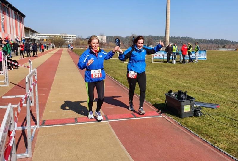 Ganz neue Wettkampferfahrungen machten ebenso über die 9,5 km Strecke für den Landescup Verena Hildebrandt und Bärbel Lallecke, die bei den Boderunners seit dem vorigen Jahr trainieren und das Team bereichern. Bärbel sagte danach: "Mit diesem anspruchsvollen Lauf in meinen ersten Wettkampf zu starten, war vielleicht nicht die beste Idee. Für mich als Walkerin war es ganz schön hart. Aber, es wächst der Mensch mit seinen Taten. Was ich besonders toll finde, ist der Gemeinschaftssinn der Truppe. Verena und Kirsten haben mich auf meinem letzten Kilometer in Stadion begleitet, da war es dann nicht so schmerzhaft. Danke Mädels nochmal dafür."