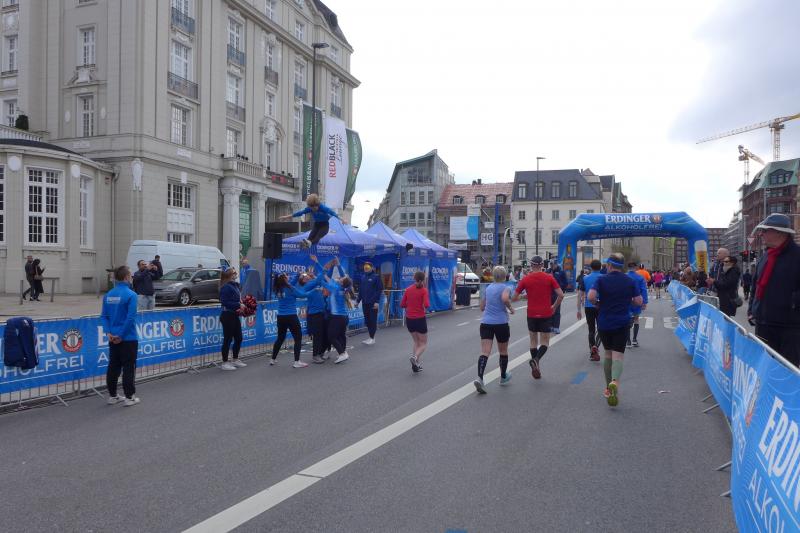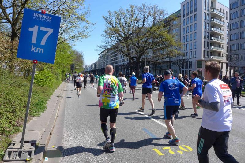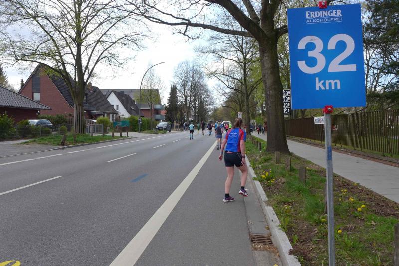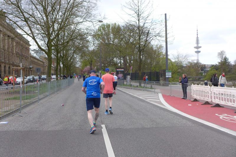 Während sich bei den Männern der Kenianer Cybrian Kotut mit einer Endzeit von 02:04:47 knapp vor Stephen Kissa aus Uganda mit 02:04:48 durchsetzte, lief Yalemzerf Yehualaw bei den Frauen eine sensationelle 02:17:23. Da war für Bothe gerade Halbzeit. Es ging weiter Richtung Stadtpark und die markante Kilometermarke 30 nährte sich. Weiter war Bothe noch nie gelaufen und unter Läufern ist bekannt, dass ab 30 der eigentliche Marathon beginnt. Daher hatten sich Tina und Sabine Börner in Ohlsdorf, dem nördlichsten Punkt der Strecke positioniert, um Bothe für die letzten zwölf Kilometer zu pushen. Die beiden wussten genau, wie jetzt jeder Schritt schmerzen konnte und der Abstand der Kilometerschilder scheinbar immer länger werden würde. Nun ging es nur noch in eine Richtung, nämlich in Richtung Ziel! Im Stadtteil Rotherbaum grüßten die Zuschauer noch einmal von der Außenalster, bevor es schnurstracks auf den Funkturm zuging.