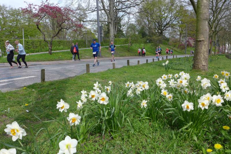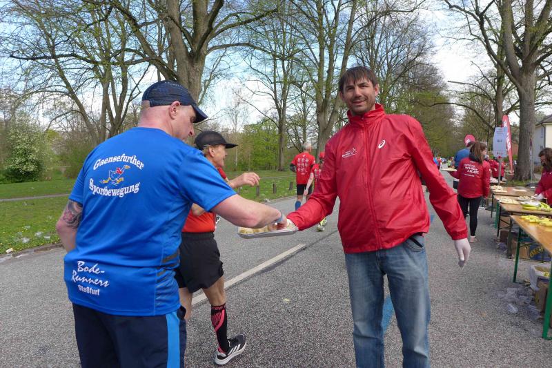 In Börners Zeitplan passte alles wieder und ein Foto nach dem anderen dokumentierte nicht nur Bothe, sondern auch das verrückte Drumherum an der Laufstrecke. Eine Band löste die nächste ab, Picknick am Streckenrand und gut gelaunte Hamburger, die ihre Marathonläufer Meter für Meter durch die Stadt trugen. Die regelmäßig eingerichteten Verpflegungspunkte nahm Bothe alle mit: "Trinken!", das hatte er sich gemerkt! Im Ziel feierte man in der Zwischenzeit neue Streckenrekorde.