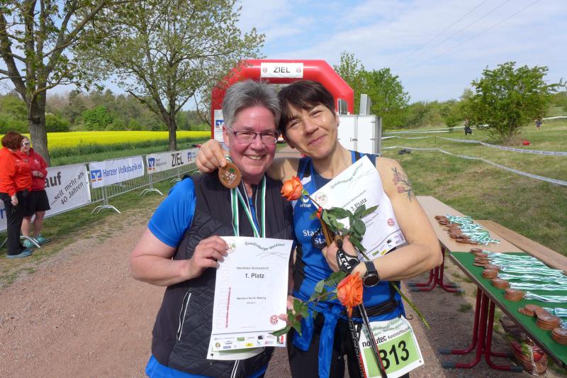 Aber auch wer es etwas entspannter angehen möchte, ist bei den Gaensefurther Lauffreunden richtig. Auch das Walking kommt nicht zu kurz, beispielsweise beim 42. Quedlinburger Waldlauf. Noch bevor das Hauptfeld auf die Wertungsläufe im Novo-Nordisk-Läufercup geschickt wurde, starteten Nancy Bothe und Bärbel Lallecke auf der 5,6-Kilometer-Walkingstrecke. Am Ende folgte aber dennoch der Blick auf die Ergebnisse und da konnte sich besonders Lallecke freuen. Sie überquerte erneut als erste Frau die heiß ersehnte Ziellinie. Schnelleren Schrittes war in Quedlinburg Sandra Homann unterwegs. So schnell, dass sie der Konkurrenz in ihrer Altersklasse W45 keine Chance ließ und über die 5,6-Kilometer-Distanz auf den ersten Rang lief. Verena Hildebrandt – begleitet von Stefan Sindermann – war über zwölf Kilometer ebenfalls vorne mit dabei und erreichte den Bronzerang in der Altersklasse W45. Für gute Vereinsarbeit nahm die Gaensefurther Sportbewegung zudem einen zweiten Platz aus der Sonderwertung mit nach Hause. Gern gesehene Gäste waren die Bode-Runners Stefan Sindermann, Sandra Homann, Janine Wuwer und Verena Hildebrandt auch beim Elbebrückenlauf in Magdeburg