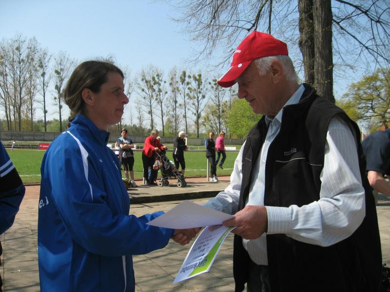Kaum im Ziel angekommen, begannen schon die Siegerehrungen. Aus Staßfurter Sicht schaffte Isa Höber ( W 45 ) bei den Damen über die lange Distanz die beste Zeit. Sie siegte mit 47 : 30 Minuten in ihrer Altersklasse. Ina Schöler von der ZLG Atzendorf folgte auf Platz zwei und Jana Berger ( beide W 40 ) wurde Dritte.