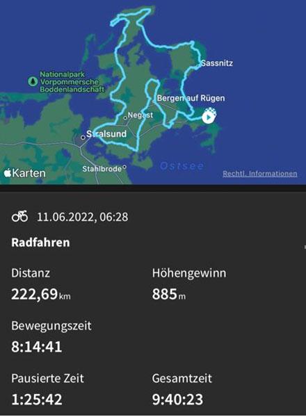 Jürgen Eisfeld von den Triathleten der Gaensefurther Sportbewegung startete auch Im Juni diesen Jahres wieder im Team mit dem Hecklinger Steffen Krüger bei einer Radrundfahrt. Nach der Mecklenburger Seenrunde mit 300km in den Jahren 2019 und 2021 sollte der Weg diesmal nach Rügen führen. Als die „Jungen Wilden“ sollte es für beide auf die 231km lange Tour gehen. Es war nicht klar, ob das Rennen stattfindet, was ja in der heutigen Situation nicht so ungewöhnlich ist. Umso größer war die Freude, als die Mitteilung kam, dass es am 11. Juni in Sellin losgehen sollte. Olaf Ludwig, Olympiasieger und zweifacher Friedensfahrtsieger, übernahm sogar die Schirmherrschaft über dieses Sportereignis.