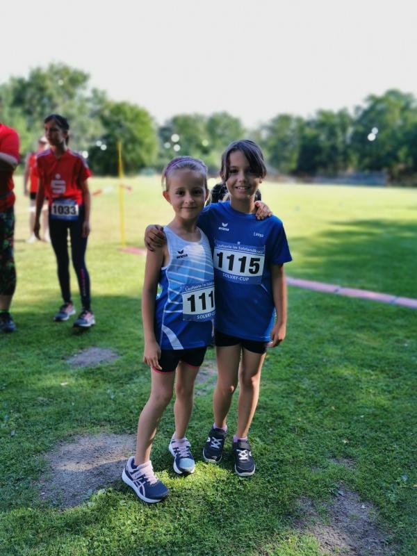 Der Schnupperlauf über einen Kilometer war für den Bode-Runners-Nachwuchs schnell Geschichte, so dass sich Lenya und Emily im Schatten oder unter dem Rasensprenger des SV Grün-Weiß Giersleben schnell wieder akklimatisieren konnten.