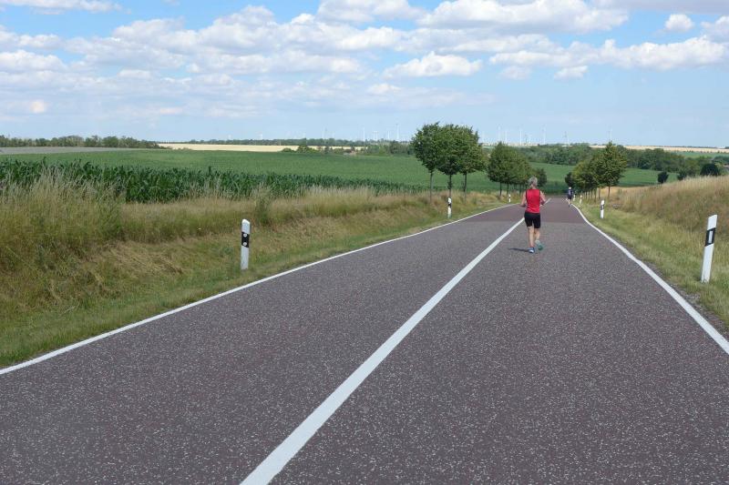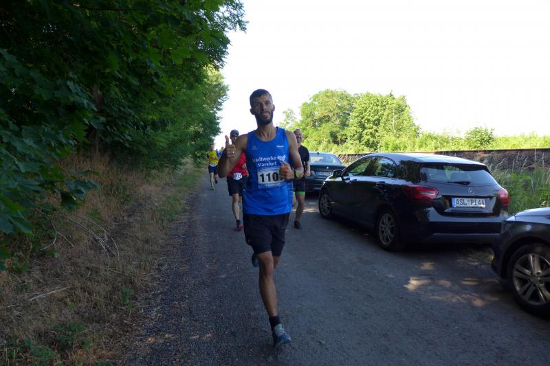 Anders die Läufer der Strecken im vierten Wertungslauf der Solvay-Cup-Serie über 5,7 und 9,8 Kilometer, die den heißen Temperaturen etwas länger ausgesetzt waren. Über den saftig weichen Spielrasen ging es für die Strecken gemeinsam vom Sportplatz zur Bahnunterführung und dann auch bald hinaus, rund um den Gierslebener Hain. Genau hier begann vor drei Jahren Rinaldo Schielkes „Laufbahn“ bei den Bode-Runners. Als er 2019 mit dem Gesamtsieg über die Kurzstrecke sein mögliches Potential zeigte, waren die Bode-Runners von dem Neuzugang sehr angetan. Aktuell holte er sich in Giersleben den Altersklassensieg in der M30 auf der Wertungsstrecke über 9,8 Kilometer und musste nur Minh Lé vom PSV Bernburg den Vortritt im Gesamtklassement der Männer lassen. „Im nächsten Jahr rutsche ich dann in Lé`s Altersklasse!“, malt sich Schielke schon jetzt die spannenden Rennen mit dem Lauffreund und Konkurrenten aus. In der Altersklasse M55 konnte sich auch noch Peter Brauer über seinen zweiten Platz freuen.