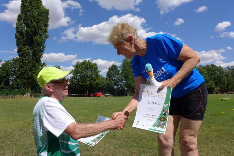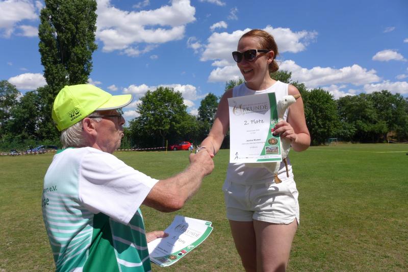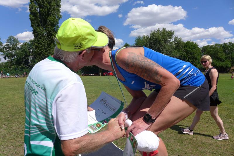 Noch einige Bode-Runners wurden in Giersleben auf das Treppchen gerufen. In sengender Mittagsglut wurde Peter Gieseler vom gastgebenden Verein nicht müde, allen Platzierten mit einem kräftigen Händedruck, einer Umarmung oder sogar mit Küsschen hier und Küsschen da zum erlaufenen Erfolg zu gratulieren. Man kennt sich eben, eine herzliche und ungezwungene Atmosphäre, zu der die Bode-Runners der Gaensefurther Sportbewegung im nächsten Jahr gerne wieder auflaufen.