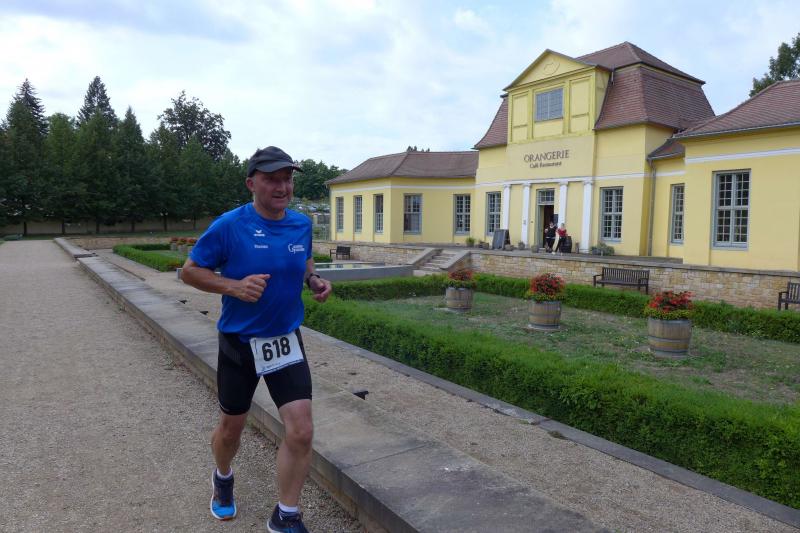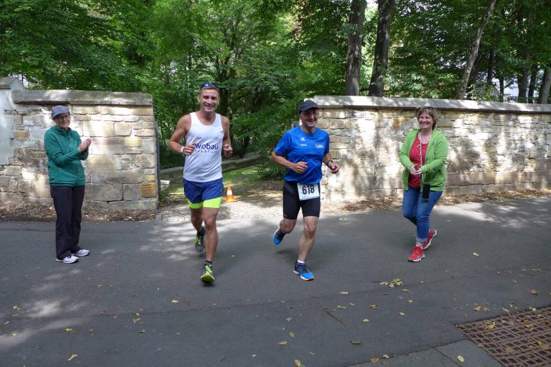 Für einige Bode-Runners der Gaensefurther Sportbewegung war die Nacht kurz, fiel der erste Startschuss zum elften Cuplauf in der Novo-Nordisk-Wertungsserie im weit entfernten Zeitz bereits um zehn Uhr. Ein paar Teilnehmer mehr hätte sich die SG Chemie Zeitz schon gewünscht, zumal die Veranstaltung als Landescup ausgetragen wurde. Die Damen gingen zuerst auf ihre fünf Kilometer, die Herren absolvierten eine Stunde später die doppelte Distanz. Der schnelle, kurvige Kurs durch den Schlosspark Moritzburg und das leidenschaftliche Anfeuern durch die Vereinskollegen, ließ den Puls von Anfang an höher schlagen. Einen wahren Krimi verfolgte man an der Strecke über zehn Kilometer bei Stefan Sindermann, der sich zum ersten Mal seinen unmittelbaren Konkurrenten Heiko Naumann vom SV Glauzig vornahm. "In Schierke war ich schon dicht dran, heute greife ich an!", puschte sich der Sportler bereits vor dem Startschuss. Da hätte vor lauter Animation Daniel Wuwer doch fast seine eigene Siegerehrung verpasst. Nur ein Sprint zum Siegerpodest rettete seine Ehrung über Platz zwei in der Altersklasse M40 über die fünf Kilometer. Sindermanns Schottenrock kam diesmal auch erst auf dem Podest zum Einsatz, mit dem er stolz auf Platz zwei vor Naumann seinen Preis in Empfang nahm.