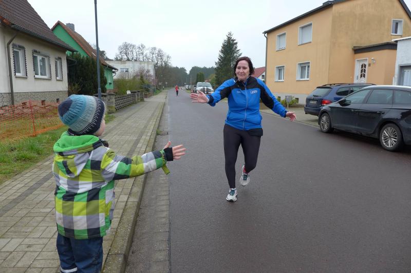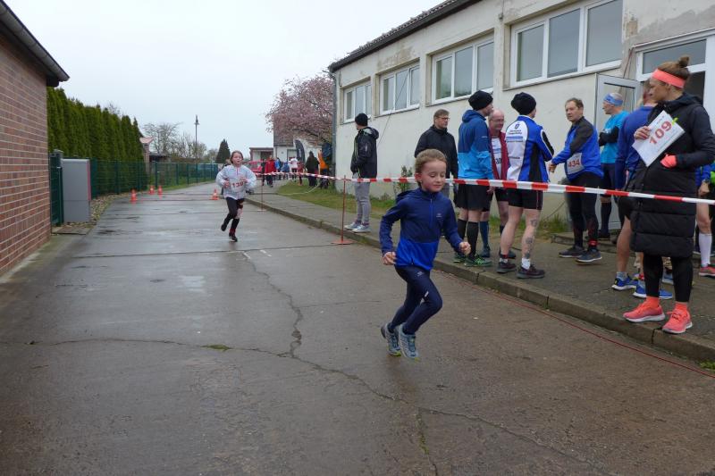 Zeitgleich und durchaus auch bergig, nahmen 150 Kilometer entfernt, sechs weitere Gaensefurther den bereits 41. Osterberglauf in Schlagenthin unter die Lupe: „Den wollte ich immer schon mal laufen!“, stöhnt Stefan Sindermann über den vollen Laufkalender und freut sich, dass es in diesem Jahr terminlich mal gepasst hatte. Der fleißige Volksläufer versucht alle drei ausgeschriebenen Lauf-Cups in Sachsen-Anhalt zu bedienen, was aber nicht einmal theoretisch umzusetzen wäre. Meist mit im Schlepptau die Familie Siebert mit Emily und Lotta, die in der Wertung des Elbe-Ohre-Cups schon fleißig Punkte gesammelt haben. Ausgemachtes Spiel, als Sabine Börner schmunzelnd die Startnummern über den Ein-Kilometer-Lauf in den Händen hielt: „Emily Nummer „Eins“ und Lotta, dir kann mit der Nummer „Sieben“ ja auch nichts passieren!“ Damit stand Emily nun mächtig unter Druck. Hinzu kam, dass scheinbar Lauffreund Aaron Wauschkuhn (Oschersleben) die Startaufstellung verpassen würde. Doch kurz vor dem „Auf die Plätze, fertig, los!“ stand er, wie schon so oft, neben ihr an der Startlinie. Die beiden machten mit den Gesamtsiegen weiblich und männlich natürlich ihr Ding und klein Lotta freute sich neben ihrer Glückszahl auf der Brust auch noch über ein Osterei in ihrer Lieblingsfarbe. Auch für die „Großen“ gab es nach getaner Laufarbeit bunte Eier im Ziel. Trotz des unangenehmen Nieselregens war es für Sindermann weitaus angenehmer zu laufen als bei der Schlammschlacht vor einer Woche in Grillenberg. „Herrliche Strecke!“, schwärmte der Lauffanatiker im Schottenrock. „Dieser Eichberg!“, holte Kathleen Mahler nach der Ziellinie tief Luft nach ihrem ersten OsterBERGlauf in Schlagenthin. Nach diesen Anstrengungen hatten sich die fleißigen Bode-Runners der Gaensefurther Sportbewegung allemal ein ruhiges Osterfest mit der einen oder anderen Leckerei verdient…