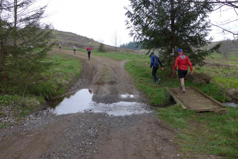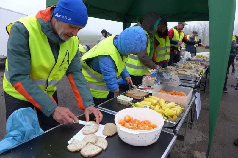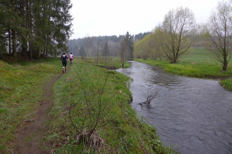 Einen Tag später waren dann die Langstreckenläufer der Gaensefurther Sportbewegung gefordert, denn die 42. Harzquerung stand auf dem Plan. Jens-Uwe Börner hatte für weite 51 Kilometer gemeldet. Petra Becker und Detlef Schäfer standen mit ihm gemeinsam am Start in Wernigerode, waren aber nicht ganz so verrückt und „nur“ auf 25 Kilometer aus. Durch den schlechten Zustand der Wege mussten sich aber alle Teilnehmer auf Umleitungen und damit längere Strecken einstellen. Gleich zu Beginn ging es heftig bergauf und riesige Matschpfützen sorgten für nasse Schuhe. Schlechte Voraussetzungen für eine Langdistanz, begünstigt Feuchtigkeit doch oft eine Blasenbildung. Ein Überholen war schwierig, denn die lange Läuferkette schob sich schleppend die schmalen Steigungen hinauf. Zeit, den Blick schweifen zu lassen, der anstatt auf dichte Wälder oft über weit gerodete Flächen im Horizont verschwand. „Hier war doch vor 6 Jahren noch Wald!“, schüttelte Börner in Erinnerung an seine letzte Harzquerung traurig den Kopf und registrierte stattdessen den Geruch der riesigen Holzstapel frisch geschlagener Bäume am Wegesrand. Aber nicht nur das frustrierte. Auch sein Zeitplan geriet komplett aus den Fugen, denn die Ankunftszeit der Harzbahn, die er sich auf den Unterarm geschrieben hatte, war schon längst verstrichen. Um sie am Kreuzungspunkt fotogarfisch festhalten zu können, hätte er schon fünf Kilometer weiter sein müssen. Der 25-er Kurs mit Becker und Schäfer war bereits abgebogen und in Richtung Ziel unterwegs, als dann auch Sabine Börner ab Benneckenstein die 30 Kilometer lange Wanderstrecke in Angriff nahm. Abenteuerlich führte sie auch durch Bachläufe, Seile halfen an steilen Passagen hinunter oder hinauf und immer wieder galt es Platz zu machen, wenn sich die schnelleren Läufer von hinten laut bemerkbar machten: "Links! Ich komme von rechts!" Auf das Überholen des Gatten wartete sie allerdings vergebens, denn zu allem Unglück verpasste er den richtigen Abzweig. Diesen Irrtum bemerke er erst nach zwei Kilometern, da es keine Markierungen und Streckenposten mehr gab. Bis zum Abzweig nochmal zwei Kilometer zurück und Läufer überholen, die man ja schon mal einkassiert hatte - Börners Laune war verständlicher Weise auf dem Tiefpunkt.