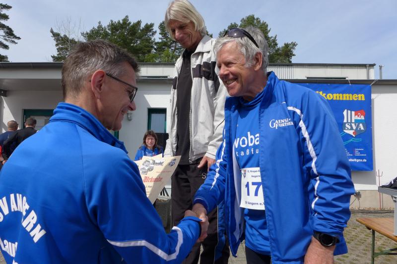 Zwei Tage später, beim Angeraner Krepe Crosslauf, war die Tragödie bereits vergessen und 19 Gaensefurther freuten sich auf den nächsten Run im Läufercup über 1,5 / 5,9 oder 10,7 Kilometer. Gerade vom Halbmarathon auf Hiddensee zurück, nutze auch Kirsten Geist den Cuplauf zum lockeren Auslaufen: "Fast wie an der Ostsee hier!", ließen doch die sandreichen Wege und die hohen Kiefern in der Ferne das Meer vermuten. Neuzugang Jens Kunkel testete die Strecke in der Walkingvariante und kam als Gesamtzweiter in das Ziel. Aber auch die Gaenseküken Emily und Lotta, Christa und Harald Fümel, Sandra Homann, Conny Günther, natürlich Kirsten Geist und ein taktisch gut gelaufener Stefan Sindermann sprangen als Platzierte erfreut auf das Podest.