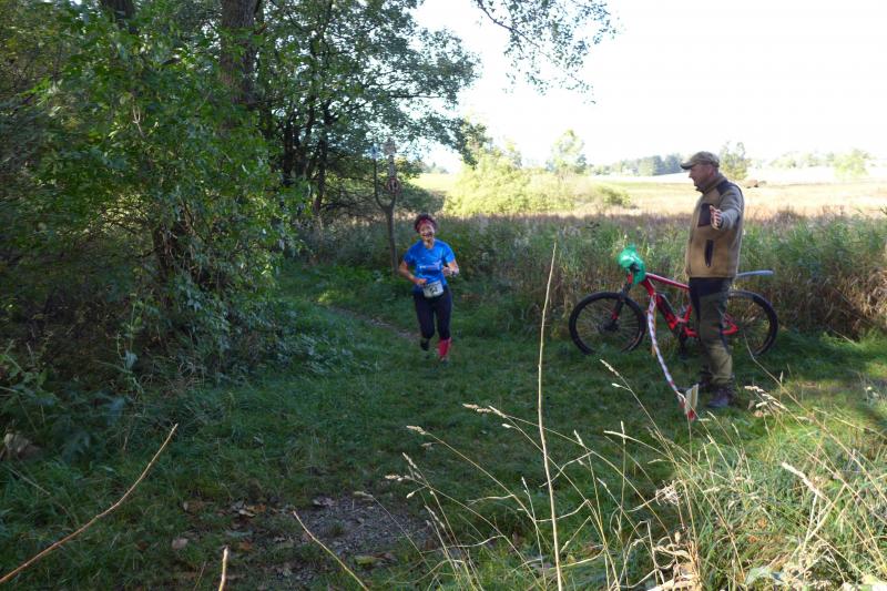 Naturlauf Nummer zwei hatten Gaensefurther dann auch am Folgetag, beim zehnten Friedrichsbrunner Herbstcrosslauf. Niemand hat mit ihm gerechnet, Stampnik war wieder da! Keine 24 Stunden vorher über den Brocken einen Marathon gefinisht, war er selbst nicht davon überzeugt, über die gemeldeten fünf Kilometer wirklich in das Ziel zu kommen. Nachdem für Jens-Uwe und Sabine Börner der Startschuss über zwei Runden von jeweils fünf Kilometern erfolgt war, begab sich Stampnik zusammen mit Nicole und Jens Schlottag auf die Verfolgungsjagt ihrer Vereinskollegen. Bei eisig frischen vier Grad Celsius ging es vom Kurpark in die weite Flur, über herrlich saftige Wiesen, dichte Mischwälder und so einige Höhenmeter. Börners waren gerade dabei die letzte krasse Steigung zu bezwingen, als die ersten Sprinter von hinten nahten. Als Dritter grüßte der Marathonmann vom Vortag, überholte das Ehepaar schwer atmend und hielt seine Platzierung bis in das nahe Ziel. Gratulation an Stampnik beim Durchlauf, mussten Börners ja erst noch ihre zweite Runde absolvieren.