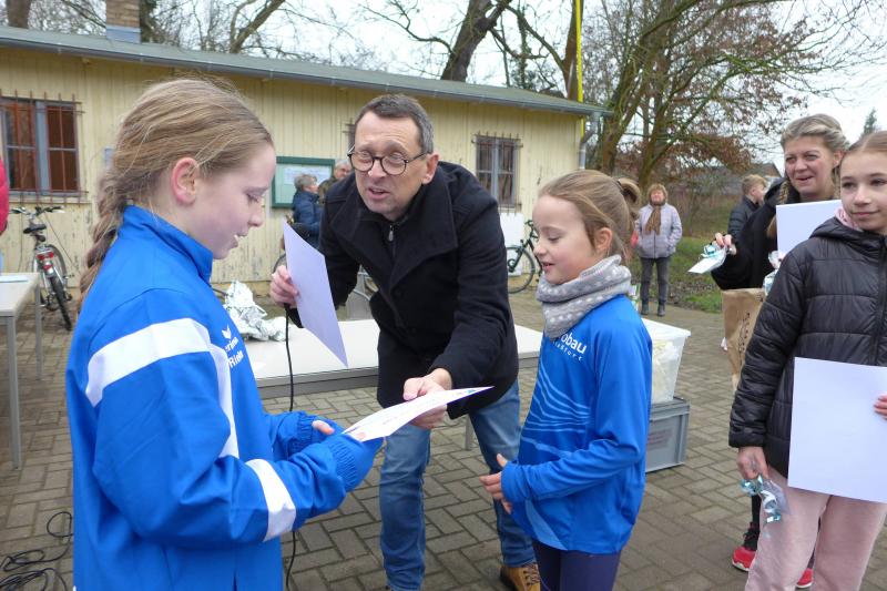 Während bei den zurückliegenden Veranstaltungen maximal drei Kilometer zu laufen waren, hatten die Organisatoren rund um Stephan Käthner in diesem Jahr sogar die doppelte Streckenlänge im Angebot. Bei dem gemeinsamen Start durften die Jüngsten nach 300 Metern wieder zurück zum Sportplatz laufen, für alle anderen ging es zunächst Richtung Cölbigk. Während die Läufer des 3,1-Kilometer-Laufs den wolkenverhangenen „Bullenstedter Brocken“ nur aus der Ferne erspähten, wartete die 6,1-Kilometer-Strecke doch mit einer anspruchsvollen Steigung auf: „Zum Glück ging es auch wieder bergab!“, freute sich Petra Becker am Ende im Ziel über die ungeplanten Höhenmeter.