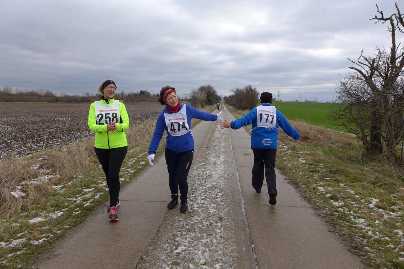 Noch so ein "Um-die-Ecke-Lauf" fand vor einer Woche im nahen Aderstedt statt. Das kleine Organisationsteam um Mike Franzelius lud zum traditionellen Aderstedter Neujahrslauf ein und freute sich über die rege Beteiligung aus den Reihen der Staßfurter Laufgruppe. Noch mehr Vertreter stellten die Lauffreunde vom SC Bernburg, doch dann war auch schon Schluss mit der Teilnehmerzahl, die nur knapp die 50 überschritt. Wahrscheinlich hatten die noch stellenweise überfrorenen Wege ihren Anteil an der geringen Beteiligung.