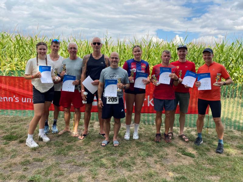 Die 5km Laufstrecke forderte von den Wettkämpfern nochmal alles ab. Inzwischen waren die Temperaturen bei ca. 25°C angelangt und die Kräfte ließen bei dem einen oder anderen nach. Angefeuert von den vielen Helfern und Freunden im Start/Zielbereich und erfrischt an den zwei Wasserständen ließ sich die stehende Hitze auf der Strecke um das Maisfeld zwischen Löderburg, Athensleben und an der Bode entlang zurück noch ertragen. Am Ende freute sich jeder, wenn er unter Beifall das Ziel erreichte und sich hier wieder erholen konnte.