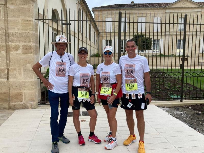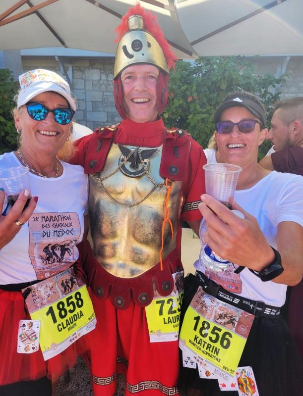 Davon berichtete man auch aus Frankreich, nur dass die Strecke etwas länger war, genau genommen einen Marathon lang. Hier lag der Fokus auf Debütantin Claudia Meier, die ruhig und beständig Kilometer um Kilometer ihrem Ziel entgegen kam. Und mit jedem Verpflegungsstand lief es sogar etwas besser. Dazu muss man wissen, dass beim Medoc Marathon die Verpflegungsstände von den zahlreichen Chateaus betrieben werden. Die verabreichten Weinproben hatten mit zunehmender Streckenlänge durchaus Auswirkungen auf den Laufstil. Auf den letzten zehn Kilometern wurden die Weinstände zusätzlich durch Gebäck, feinsten Schinken, Austern und Eis ergänzt. Das erklärt auch die Zielzeit von über sechs Stunden, die die Runners für ihre 42,195 Kilometer benötigten. Überglücklich und in leichten Schlängellinien wird es wohl der erste und letzte Marathon für Meier gewesen sein. Ein Erlebnis, dass der Läuferin nicht mehr zu nehmen ist. Am Atlantik haben die Lauffreunde noch ein paar Tage Erholung für Körper und Geist gebucht, bevor es dann wieder in die Heimat geht.
