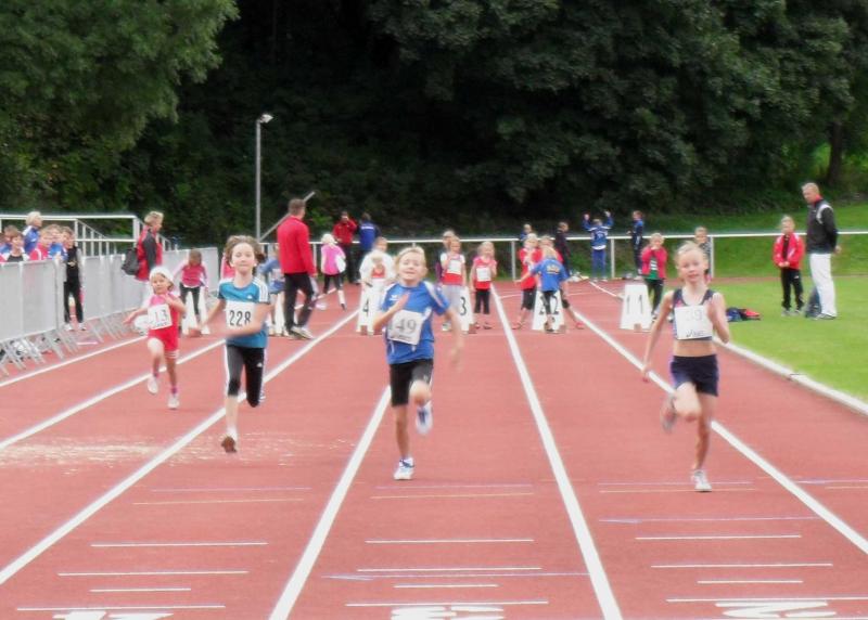 Marek Kadereit (m8) absolvierte den ersten Wettkampf dieser Art, denn er gehört erst seit einigen Wochen der Abteilung Leichtathletik der Gaensefurther Sportbewegung an. Mit 8,82s über 50m, 3,00m beim Weitsprung und 23,54m beim Ballwurf musste er nur Till Blättermann aus Sangerhausen den Vortritt lassen. Groß war die Freude, als er mit Platz 2 und 738 Punkten knapp die Nase vorn hatte vor dem Drittplatzierten mit 735 Punkten. Der Hecklinger Robin Dietrich (m8) trainiert schon länger in Staßfurt, einen Wettkampf im Dreikampf bestritt auch er zum ersten Mal. Mit 9,33s/ 2,90m/ 25,37m und 682 Punkten schaffte er einen guten fünften Platz. Auch Paul Höber (m10), ebenfalls neu im Team, gab sein Debüt. Da viele Gleichaltrige schon über mehr Erfahrung verfügen, kam es für ihn erst einmal darauf an, Wettkampfluft zu schnuppern und im folgenden Training sich mit den Techniken der Disziplinen intensiver vertraut zu machen. Nico Ringström (m10) bringt diese Erfahrungen mit. Leider konnte er diesmal seine Bestleistungen nicht abrufen und landete mit 921 Punkten (8,37s/ 3,85m/ 29m) auf Platz 9. Auch Pascal Richter (m11) zählt schon zu den „alten Hasen“. 8,51s/ 3,63m/ 28,27m brachten ihm 831 Punkte und Platz 12 ein. Bei den weiblichen Teilnehmern starteten Lea Wienert (w11) und Nele Schlüter (w9). Lea, am Vortag beim Stadtseelauf mit dem 2. Platz geehrt, kam trotz persönlicher Bestleistung im Weitsprung mit 3,64m auf Platz 11 und 1130 Punkte. Außerdem standen für sie 8,18s im 50m Sprint und 27,28m im Ballwurf zu Buche. Nele erreichte mit 8,88s/ 3,00m/ 19,95m Platz 9 und 885 Punkte.