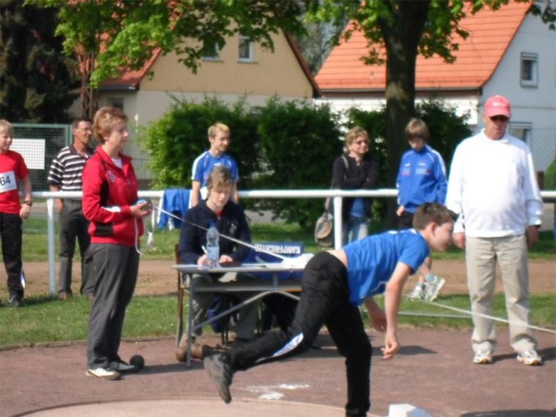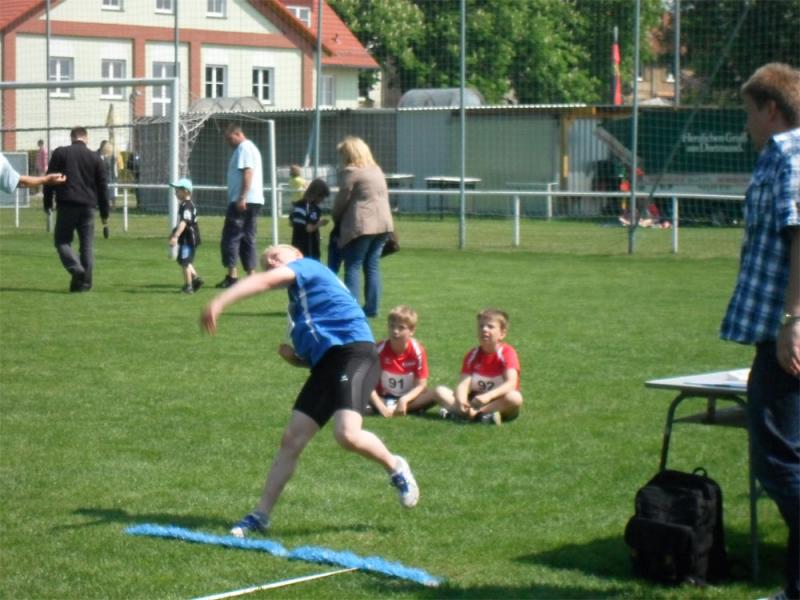 Für die Schüler D und C stand der Dreikampf mit 50 m Lauf, Weitsprung und Ballweitwurf auf dem Programm. Der jüngste Gaensefurther Teilnehmer war Marek Kadereit (m9). Nachdem er in den Osterferien Gelegenheit hatte, in einem Trainingslager seine Technik zu vervollkommnen, durfte man auf das Ergebnis sehr gespannt sein. Mit einer erheblichen Verbesserung seiner Leistungen in allen ausgewählten Disziplinen überzeugte er Übungsleiter und Eltern. 8,43 s über 50 m, 3,27 m im Weitsprung und 35 m im Ballweitwurf, die 893 Punkte im Dreikampf einbrachten, sicherte er sich Platz 3 und musste nur Mitstreitern aus Sangerhausen und Halle den Vortritt lassen.