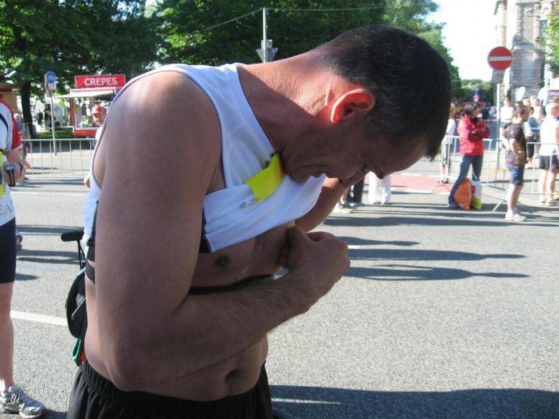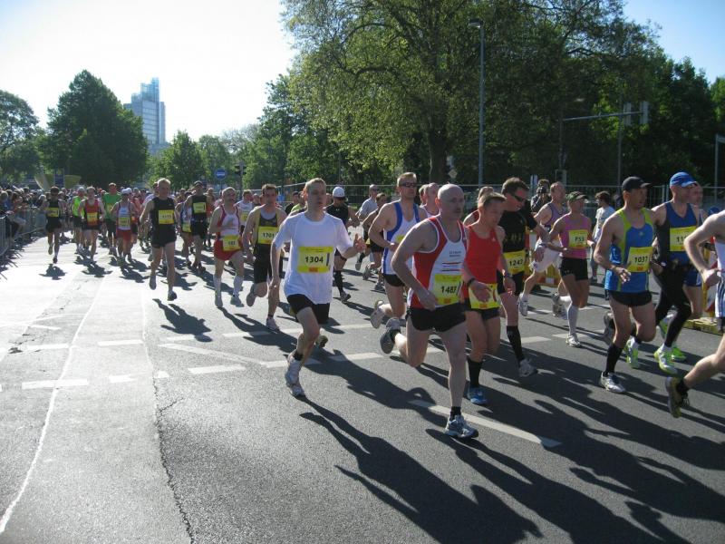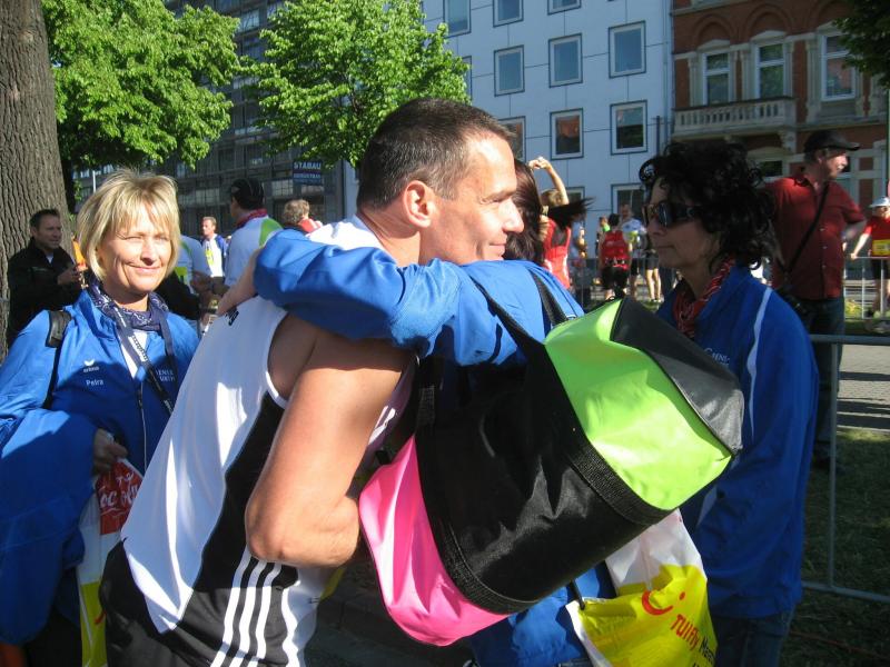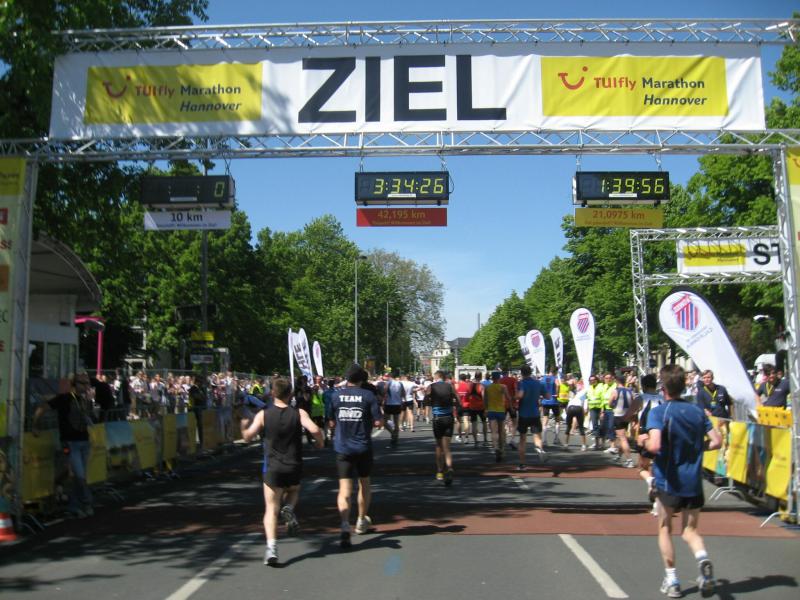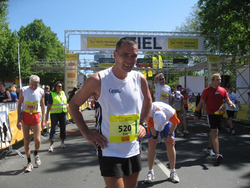 Am Abend vor dem Marathon wurden noch die besten Glückwünsche versendet, die Nachtruhe war unruhig und viel zu kurz. Bereits um 5:30 Uhr sammelte sich die erste Fahrgemeinschaft in Richtung Hannover und nach Parkplatzsuche und Startnummernausgabe breitete sich Dirk Meier als einziger der Mitgereisten auf seinen Marathonstart um 9:00 Uhr vor. Zeitgleich, aber im 500 Kilometer entfernten Prag, fieberte Lutz Klauß seinem ganz persönlichen Kampf entgegen. Beide Männer bereits des Öfteren über 42,195 Kilometer gestartet, wussten dass ihnen die bevorstehende Hitze wertvolle Minuten kosten kann, denn das Wetter ist ein Faktor welcher beim Wettkampf nicht zu beeinflussen ist. Entgegen dem Trainingszustand, den beide Sportler nicht dem Zufall überlassen hatten und optimal vorbereitet an den Start gingen. Die Tagesform passte und laut schallende Musikhits und die begeisterte Menschenmasse am Start ließen den Adrenalinspiegel unaufhörlich steigen. „Zehn, neun, acht“ zählten die Teilnehmer ohrenbetäubend. „Drei, zwei, eins – Start!“ Minutenlang schob sich der Tross über die Startlinie, ein Chip am Laufschuh befestigt, registrierte die genaue Startzeit. Neben tausenden Volksläufern kamen auch namhafte Top-Athleten wie Peter Kurui (am Ende zweiter Platz) oder Amos Matui (3. Pl.) an die Leine. Am Ende sollte Lusapho April aus Südafrika in 02:09:25 Stunden siegen, nur 10 Sekunden vor den starken Kenianern. Laufzeiten, von denen europäische Athleten meist nur träumen.