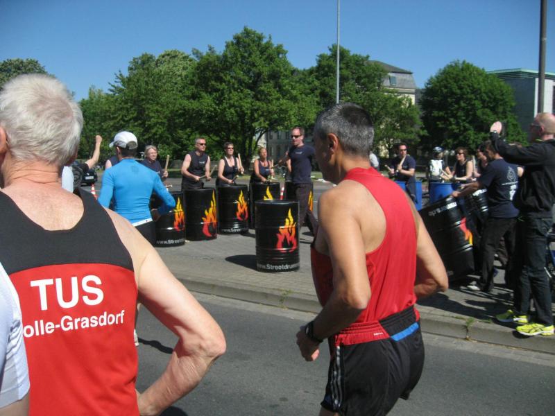Eine ganz andere Traumzeit hatte Lutz Klauß verinnerlicht. Ein Marathon unter vier Stunden sollte es werden. Über Kopfsteinpflaster ging es durch die schöne Prager Altstadt, aber selbst das hatte er trainiert. Kam in der Vergangenheit ab Kilometer 32 immer „der Mann mit dem Hammer“, war Tschechien wohl weit genug entfernt. Es kam bald Kilometer 35 und weiter, der Mann kam einfach nicht. Nach traumhaften 3:55:48 Stunden lief Klauß über die Ziellinie. Anruf in Deutschland: „Nie wieder Marathon - ich hab´s geschafft!“ Bei Meier lief bis Kilometer 35 alles nach Plan. Dann ein Schlenker und ein schleichender Schmerz im Rücken, welcher immer heftiger wurde. Mit ruhigem 130er Puls humpelt Meier in Hannover über die Ziellinie. Am Dienstag lief er wieder… Katrin Winkler-Hindricks, Petra Becker und Jens-Uwe und Sabine Börner starteten unter der Devise: „Halb reicht auch mal!“ Aufgeregt trennte man sich vor dem Start der 21 Kilometer, um sich nicht gegenseitig verrückt zu machen. Zahlreiche Samba-Bands begleiteten die Damen bei ihrer Sightseeing-Tour durch die City. Fast zeitgleiche Ergebnisse wurden am Ende verbucht. „Da hätten wir auch zusammen laufen können!“ Denn ganz allein lief auch Sylvia Köhn. Das Ziel, die zehn Kilometer unter einer Stunde zu absolvieren hat sie trotz Mittagshitze und böigem Wind souverän gemeistert. Das ist noch weiter ausbaufähig! Einem neuen Weltrekord durften die Bode-Runners der Gaensefurther Sportbewegung dann auch noch erleben. 51 Teilnehmer waren als Kettenläufer aneinander gekettet und bewältigten unter diesen Umständen die Marathondistanz.