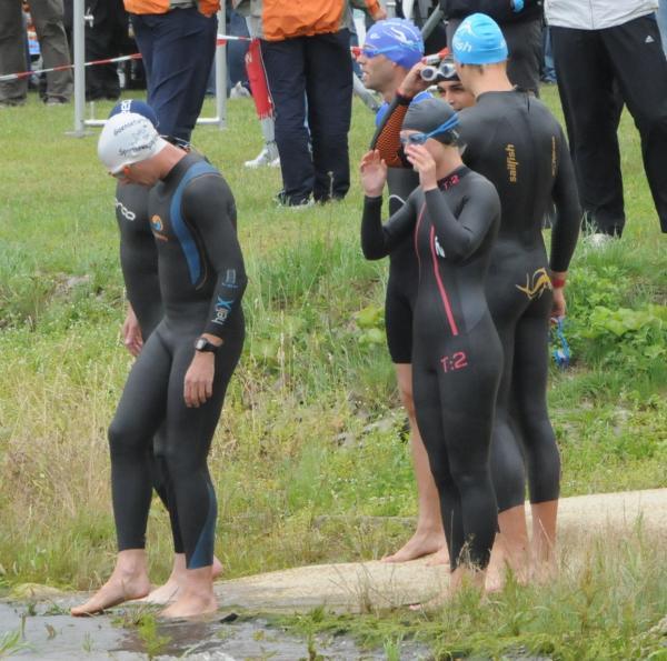 Während sich Alex nach seinem kurzen Ausflug in die Fluten am Ufer mit einem frisch gebrühten Kaffee aufwärmte und anschließend langsam seine Sachen zusammenpackte, kämpfte Ragoß mit den meterhohen Wellen. Einige der Aktiven verloren sogar die Orientierung. Selbst der spätere Sieger Markus Liebelt (Triathlonteam Die kessen Sachsen) hatte Probleme. "Die Wellen waren so enorm, dass ich zwischendurch auf Brustschwimmen umgestiegen bin, um die Bojen zu sehen", berichtete er im Ziel. Der Organisator entschied sich kurzfristig – die Teilnehmer waren bereits im Wasser – die Schwimmstrecke von 1,5 Kilometer auf 750 Meter zu verkürzen. Liebelt entstieg als Neunter in einer Zeit von 15:42 Minuten dem kühlen Nass. Ragoß, der Schwimmen nicht zu seiner Lieblingsdisziplin zählt, benötigte 18:29 Minuten. Der anschließende Wechsel auf das Rad verlief für den gebürtigen Wasserlebener reibungslos. "Ich habe meinen Neoprenanzug gut ausgezogen bekommen." Dieser bereitete ihm in den vergangenen Wettkämpfen einige Probleme.