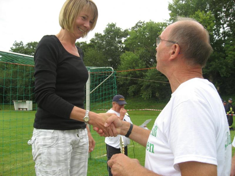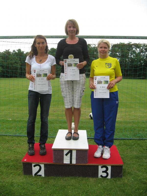 Um hartnäckige Verfolger muss sich Ina Schöler von der ZLG Atzendorf nun wirklich keine Gedanken machen. In Giersleben ließ sie die gesamte Konkurrenz über die 5,7 Kilometer stehen und sicherte sich den Gesamtsieg – mit 37 Sekunden Vorsprung vor Birgit Kohlenbach aus Aschersleben, gleichzeitig Nummer zwei in der Solvay-Cup-Wertung. Bisher hatte Schöler immer die Nase vorn, und wer die Atzendorferin am Sonntag gesehen hat, der wird keine Zweifel daran haben, dass sich das ändern könnte. Zusätzliche Motivation scheint Silvio Kelle von der TSG Calbe nicht zu brauchen. Nachdem er sich bereits bei der Anreise mit dem Fahrrad und dem Zug etwas aufgewärmt hatte, lief er noch vor dem Start mehrere Runden um den Sportplatz und hatte schließlich auf der „Zielgeraden“ noch genug Kraft, um Heiko Schimpf (TC Krumbholz Bernburg) und Uwe Goldhorn (SG Salzlandsparkasse) mit einem Sprint zu überholen und sich damit die Bronzemedaille in der M 40 zu sichern. Teamkollege Andreas Broska indes war froh, „nicht über die lange Distanz laufen zu müssen“, nachdem er sich beim Abzweig in Richtung Ziel davon überzeugen konnte, dass die Läufer über 13,6 Kilometer „noch einen harten Anstieg vor sich hatten“. Dennoch hatte er sich „bei gutem Laufwetter“ eigentlich mehr vorgenommen, wollte eine niedrige 40er Zeit laufen. Mit 45:56 Minuten sicherte er sich dennoch Platz eins in der A-Jugend und die Führung in der Gesamtwertung des Solvay-Cups.