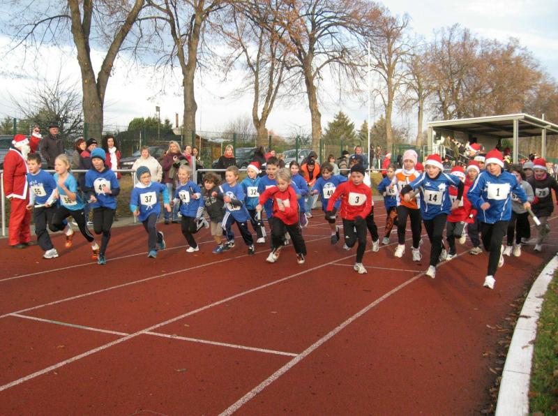 „Mama, wo ist der Nikolaus?“, ging der fragende Blick des dreijährigen Finn an seine Mutti. Achselzucken und an der Startlinie zum 200-Meter-Lauf der Vorschulkinder herrschte eine Stimmung wie beim Warten auf den Weihnachtsmann. Und dann, mit lautem Gebimmel war alles klar, mit solch einem schweren Sack auf den Schultern! Den Nikolaus, seit Jahrhunderten als Wohltäter der Kinder verehrt, hatten die Bode-Runners der Gaensefurther Sportbewegung bereits zum 03.12.2011 in das Stadion der Einheit bestellt. Die Anspannung war den Kleinen förmlich ins Gesicht geschrieben. Ruhig bereitete der Nikolaus die Jüngsten auf den lauten Startschuss vor und erklärt wie weit gelaufen werden muss. Finn Lampe hatte die halbe Stadionrunde vor ein paar Tagen bereits mit seinen Eltern ausprobiert. Zusammen mit Johanna Blauwitz und Marie Seichter gehört er zum Nachwuchs der Abteilung Triathlon. Marie als älteste in der Gruppe der Vorschulläufer, konnte bereits beim Gaensefurther Schlossquellenlauf Erfahrungen sammeln. Nach dem Startschuss setzte sie sich schnell von der Gruppe ab und lief hinter dem Sieger, Matheo Schinzel vom KRC safersurf, überglücklich in Muttis Arme. Johanna und Finn hatten unterwegs viel Spaß und meisterten die letzten Meter zusammen mit ihren Eltern. Eine süße Belohnung verteilte der Nikolaus dann für alle zehn Teilnehmer aus seinem schweren Reisegepäck, bevor die Platzierten mit Urkunden und Preisen der Salzlandsparkasse geehrt wurden.