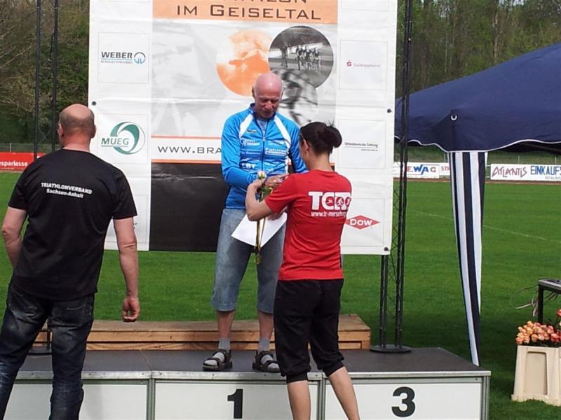 Die Triathleten unseres Vereins waren am Sonntag beim Duathlon im Geiseltal aktiv. 6 Gaensefurther Dreikämpfer im Erwachsenenbereich hatten 5km zu laufen, 22km Rad zu fahren und noch einmal 2,5 km zu laufen. Torsten Blauwitz überquerte nach 1:11,19 Stunden die Ziellinie. Damit wurde er Dritter seiner Altersklasse und Vize-Landesmeister. Auch Jürgen Eisfeld konnte von sich überzeugen. Der 70-Jährige eroberte mit einer Gesamtzeit von 1:30,31 Stunden den obersten Podestplatz und wurde gleichzeitig Landesmeister.