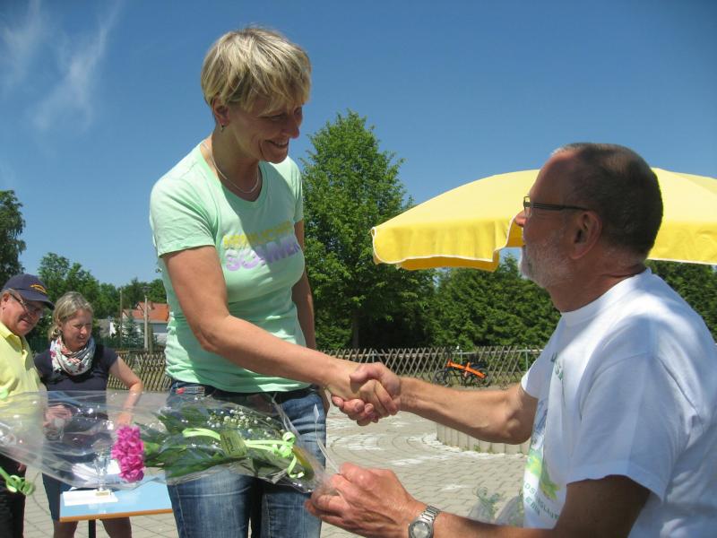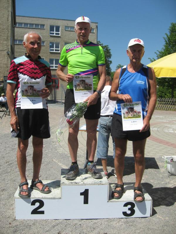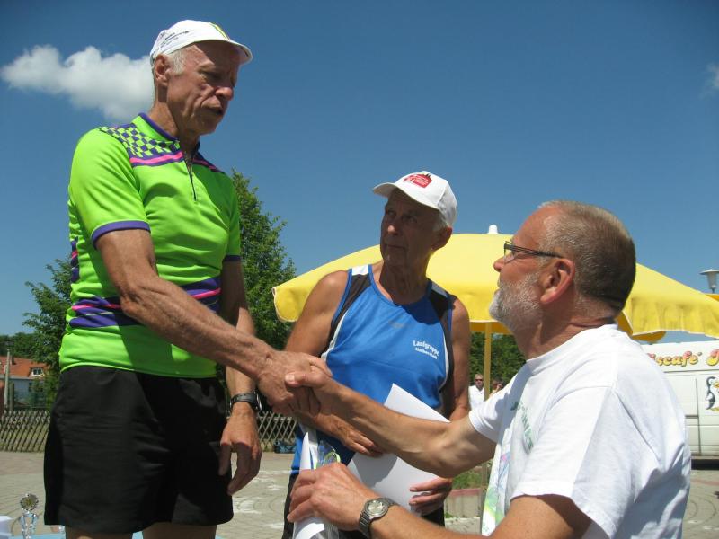 Sylvia Köhn freute sich riesig über den 1. Platz in der W 30, ebenso Jürgen Eisfeld, Triathlet der Gaensefurther Sportbewegung, in der M 70. Tröstende Worte fanden die Vereinskollegen für Börner: „Ach Jens-Uwe, letzter Platz!“ „Na und, dafür hab ich die meisten Fotos!“, grinste er und belohnte sich mit einer ordentlichen Portion Eis.