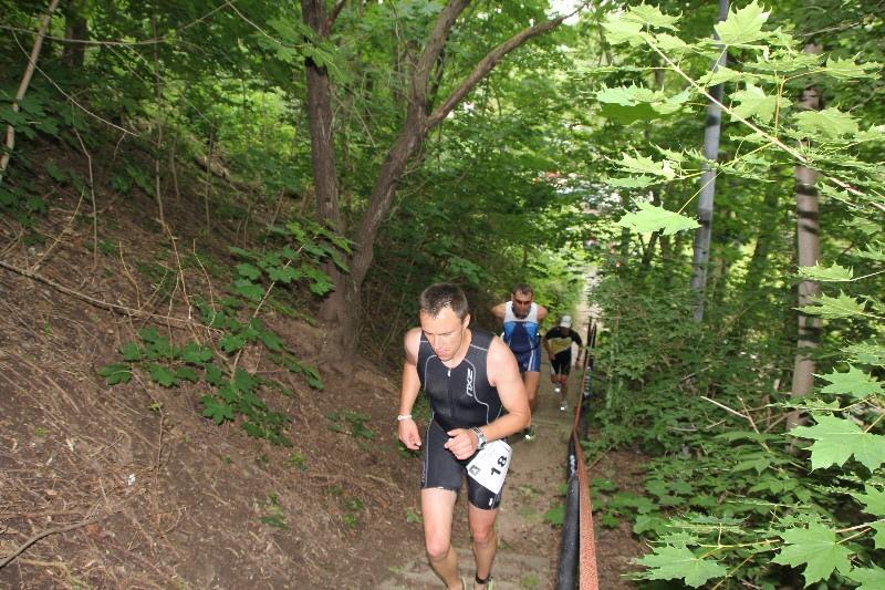38, 39, 40 ... - und irgendwann ist sie doch bezwungen. Wie viele Stufen die "Treppe des Grauens" beim Bernburger Saale-Bären-Triathlon hat, weiß eigentlich niemand so genau. Die acht Starter der Gaensefurther Sportbewegung, welche die achte Auflage am Sonntag in Angriff nahmen, wissen jetzt jedenfalls, dass man die Treppe entweder liebt oder hasst.