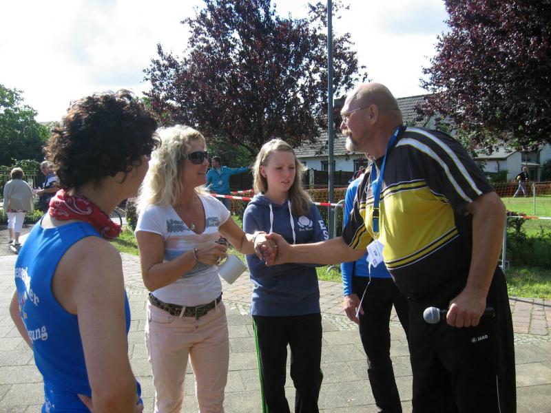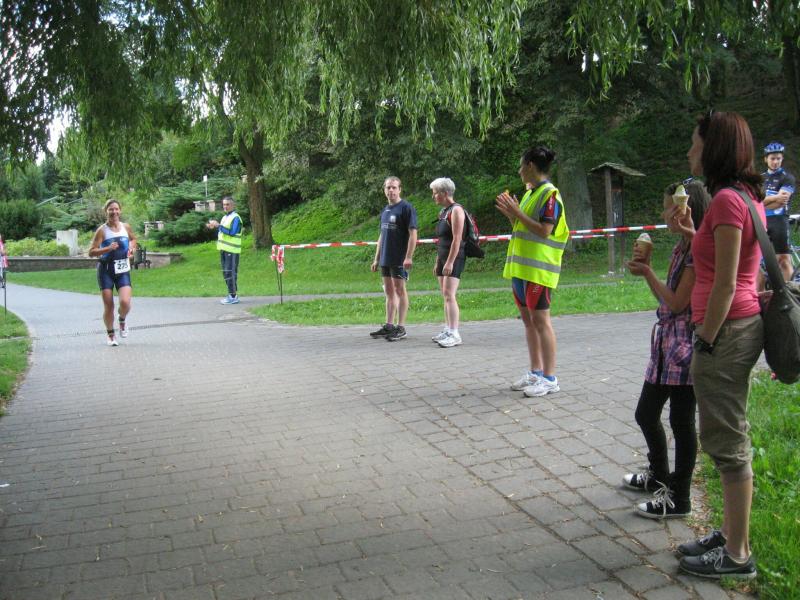Als diese die Ziellinie schon überquert hatten, tobte sich Annett Lampe noch auf der Laufstrecke aus, was durchaus wortwörtlich und nicht despektierlich gemeint ist: "Dadurch, dass es diesmal im Uhrzeigersinn um den See ging, waren auch drei kleinere Hügel zu bewältigen. Das kostet Kraft, aber die haben wir ja alle." Die hat vor allem sie und so stoppte ihre Uhr nach schnellen 50:35 Minuten zu Fuß und in einer Gesamtzeit von 2:39:33 Stunden. Es folgten noch Ralf Rosenmeier (2:39:37 Stunden) und Toralf Schmidtschneider (2:55:29 Stunden). "Es war ein klasse Wettkampf. Alle waren zufrieden."