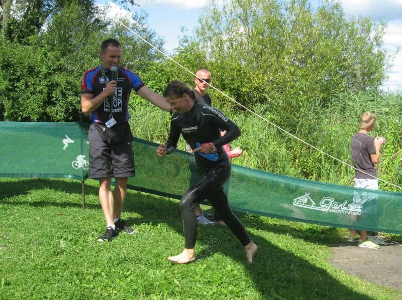 Nicht zuletzt eine gute Zeit im Wasser bescherte Sabine Börner eine Zielzeit von 1:25:56 Stunden und damit den Altersklassensieg bei den Seniorinnen 2 sowie Gesamtplatz sieben. Ehemann Jens-Uwe wurde in 1:23:11 Stunden Zweiter bei den Senioren 2. Sonst im läuferischen Bereich zu Hause, holten beide natürlich vor allem in der dritten Disziplin auf...