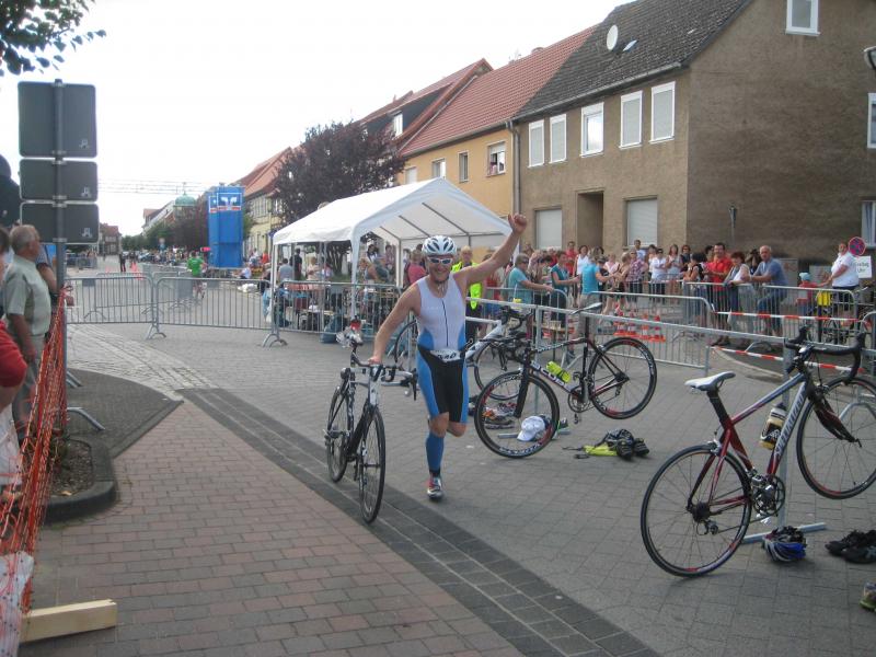 Auch auf den drei Radrunden à 13,3 Kilometer machten sich einige Neuerungen bemerkbar. "Sonst mussten wir eine große Runde absolvieren. Diesmal wurde am Marktplatz gewendet. Das ist eine super Motivation, wenn man dort seine Leute im Publikum sieht." Am meisten ließ sich dabei Daniel Ragoß beflügeln, der nicht nur auf dem Rad, sondern auch in der Endabrechnung das teaminterne Duell der Gaensefurther in einer Zielzeit von 2:22:40 Stunden für sich entschied. Hinter ihm folgten Matthias Lampe (2:27:40 Stunden), Schöler (2:29:51 Stunden), Thomas Vetter (2:34:48 Stunden) und Janko Schlenker (2:39:26 Stunden).