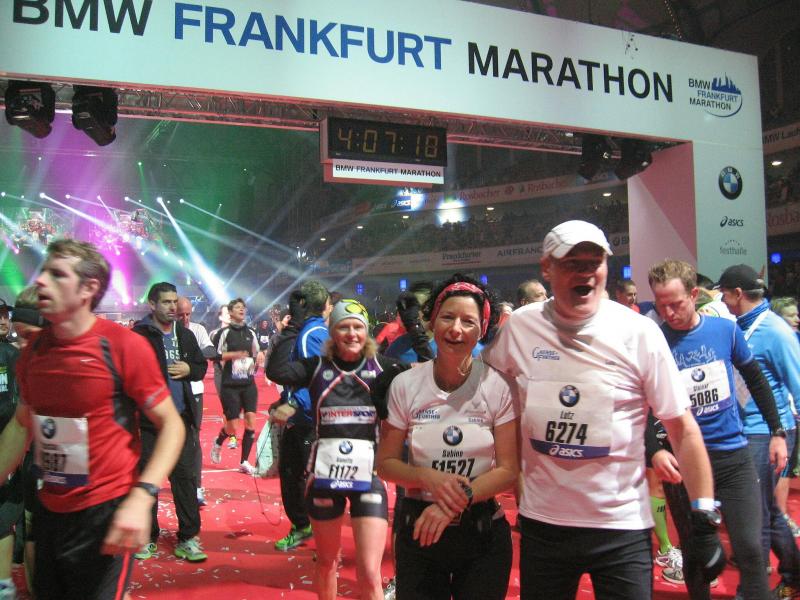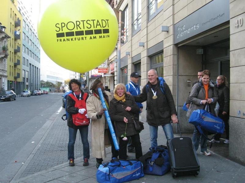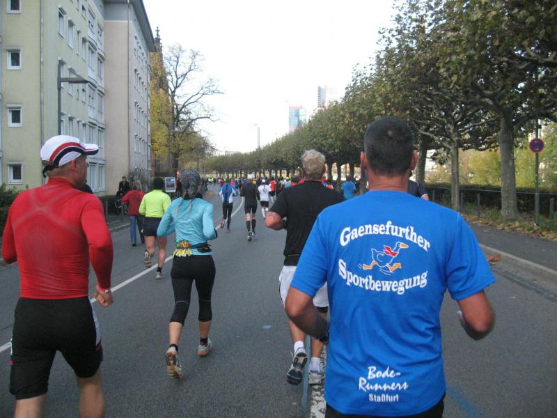 Für die Bode-Runners der Gaensefurther Sportbewegung stand als besonderer Saisonabschluss der Frankfurt Marathon auf dem Programm. In wochenlangem Training bereiteten sich vier Staffelläufer und sieben Marathonis auf das neue Abenteuer vor. Erst in der letzten Vorbereitungswoche stand fest: Drei Sportler werden aus gesundheitlichen Gründen nicht mit am Start sein. Ein herber Rückschlag, nicht nur für die gut trainierten Läufer, sondern für die ganze Gruppe, denn was verbindet mehr als gemeinsamer Sport. Bereits am Vortag angereist, hatten die Bode-Runners auf der gut organisierten Marathonmall keine Mühe sich die Zeit zu vertreiben, denn zahlreiche Sportartikelhersteller präsentierten das notwendige Equipment zum Laufsport. Während mit Lauflegende Dieter Baumann und dem 101-jährigen ältesten Marathonläufer Fauja Singh vor der Festhalle der traditionelle Brezellauf startete, beruhigte sich auch langsam der böige Wind. Hinter der letzten Schneeregenwolke leuchtete zart die Abendsonne, welche Frankfurts Skyline ein beruhigendes Aussehen verpasste. Mit gut gefülltem Nudelbauch und einem letzten Stoßgebet zur Ruhe gebettet, war es mitunter eine kurze und unruhige Nacht.