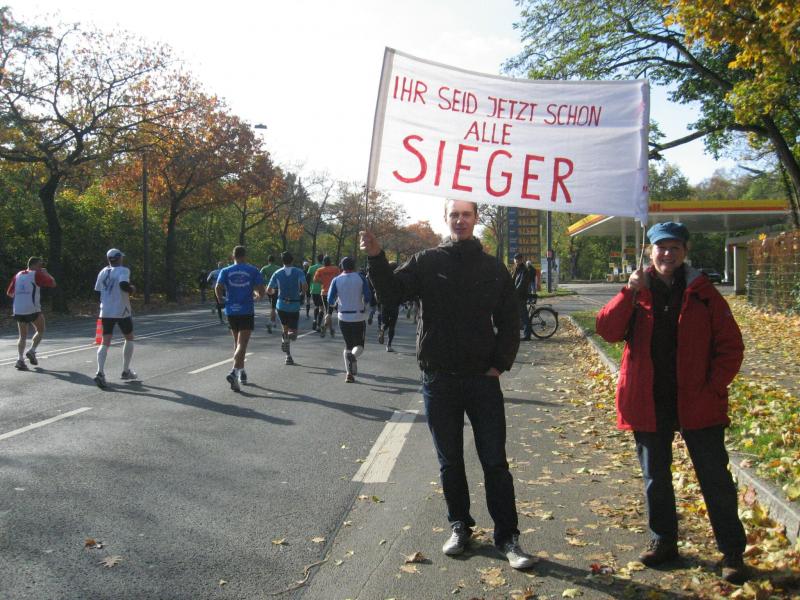 Während Meier wie ein geölter Blitz in Richtung Ziel fightet, knallt Schäper mit seinem Fuß an einen Gullydeckel. Hatte er sich bereits eine Zielzeit unter 3:50 Stunden ausgerechnet, sah er plötzlich Sterne. Da half nur eins: Tempo rausnehmen – Schade! Ab Kilometer 32 beginnt dann wohl das Leid. Doch die Läufer werden auf den letzten Kilometern vom Publikum getragen, eine einzige Party entlang der Strecke. Börner hatte sich inzwischen bis zu Sabine zurückfallen lassen. Sieben Kilometer waren noch zu absolvieren, schlimme sieben Kilometer für Börner, wollte Sabine doch ihr Vier-Stunden-Ziel erreichen. Was redet da der Sprecher am Streckenrand: „Und hier kommt Lutz Klauß von der Gaensefurther Sportbewegung - Gaensefurther - ein großer Förderer des Sportes! Lauf Lutz, bring das Ding nach Hause!“ Ansporn für Sabine, noch einen Zahn zuzulegen um mit beiden Lauffreunden durch das Ziel zu laufen. 500 Meter vor dem Einlauf in die Festhalle waren dann alle drei vereint. Kurz darauf erreicht auch Schäper das langersehnte Ziel. Meier glänzte schon von weitem mit einer neuen Bestzeit. Schäper, Klauß und Sabine können ihr Glück ebenso wenig fassen. Lediglich Börner flucht auf den Wahnsinn: „Wie kannst du denn nur so rennen!“ ruft er Sabine kopfschüttelnd zu. „Nie wieder…“ – unterbricht ihn seine Frau: „Für Hamburg sind wir doch bereits angemeldet!“ Auch dort wird eine Staffel möglich sein, denn die Frankfurter Staffelläufer sahen in dem gelungenen Gemeinschaftsprojekt Wiederholungspotential. Nach der nötigen Erholungspause werden sich die Bode-Runners der Gaensefurther Sportbewegung nun ihrem nächsten regionalen Event widmen: Die Vorbereitungen für den 7. Staßfurter Nikolauslauf stehen an. Eine Laufveranstaltung im Stadion der Einheit, zu der sich die Veranstalter eine rege Teilnahme wünschen – um vielleicht den ein oder anderen Freizeitsportler noch mit dem Laufvirus zu infizieren.