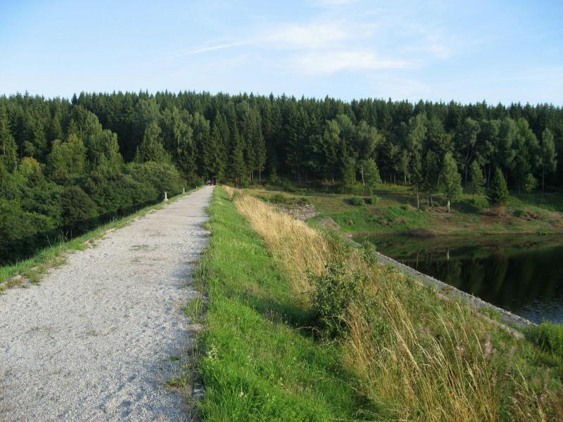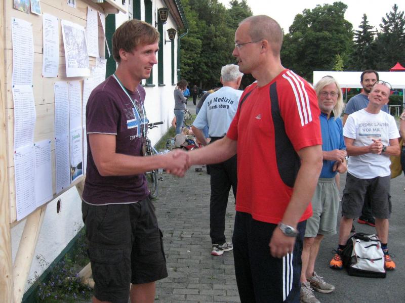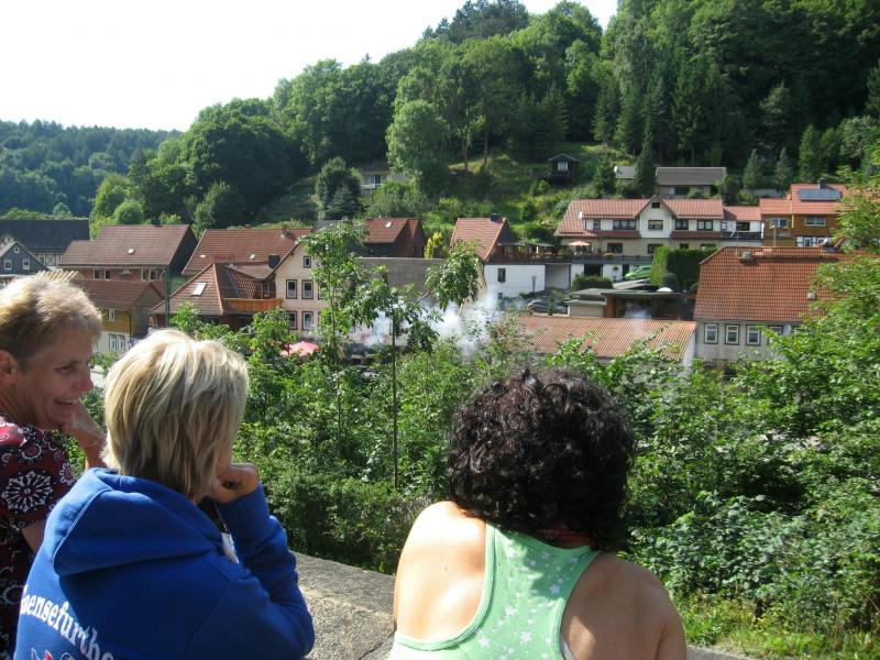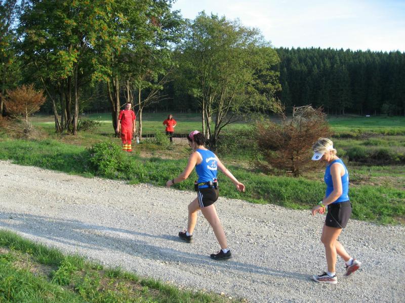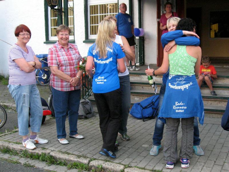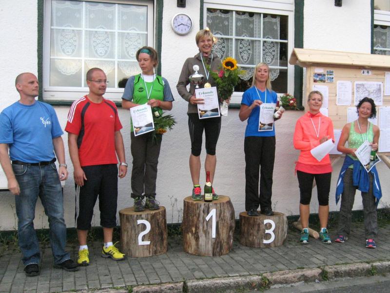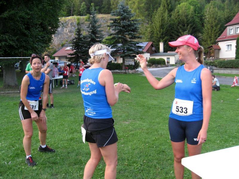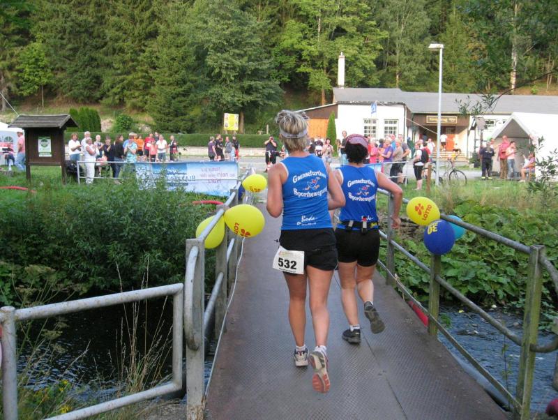 An dem Ort wo Kalte und Warme Bode zur eigentlichen Bode zusammenfließen, war der Start für 17:10 Uhr ausgeschrieben. Damit konnte das Kulturprogramm also nur vor dem Wettkampf absolviert werden. Nach einer Talsperrenbesichtigung und einem anständigen Mittagessen wurden in der Rübeländer Hermannshöhle, bei angenehmen acht Grad Celsius, die Läuferbeine ordentlich herunter gekühlt. Nach dem anschließenden Start in Königshütte mussten diese dann behutsam davon überzeugt werden, jetzt noch Schwerstarbeit zu leisten. Aber eine leichte Angst im Nacken trieb voran, denn die 21 Kilometer sollten möglichst ohne Umwege und vor Einbruch der Dunkelheit ins Ziel gebracht werden. Über herrliche Wald- und Wiesenwege war bald die Talsperre Königshütte erreicht. Gemeinsam mit den zehn Kilometerläufern kämpfte man sich hinauf zur Ruine Königsburg, von der es dann wieder rasant hinab ging. Nach 9,5 Kilometern trennten sich die Strecken und Renate Liedtkes erster Platz in der Altersklasse W60 war nur noch 500 Meter entfernt. Für die Langdistanz ging es wieder von 425 bergan auf über 500 Höhenmeter. Jens-Uwe Börner hatte sein Tun, den Frauenkampf fotografisch für die Nachwelt festzuhalten. Während sich Katrin Krebs an der Spitze zwischen Platz zwei und vier einsortieren musste, gelang es Petra Becker an Sabine Börner heran zulaufen. Nach dem Umrunden der Talsperre Mandelholz ging es in leichten Wellen an der Kalten Bode zurück nach Königshütte. Krebs brachte im Gesamtfeld der Frauen einen heiß erkämpften dritten Platz über die Ziellinie, Börner und Becker finishten am Ende wie so oft, gemeinsam. Wie für die Bode-Runners gemacht, ehrte der Veranstalter erfreulicherweise die Gesamtplätze eins bis sechs mit einer Medaille. Neben Krebs gingen die beiden letzten Frauen-Lorbeeren an Börner und Becker. Bei den Männern freute sich Triathlet Daniel Ragoß über den sechsten Platz Gesamt, was für ein Fest für die Gaensefurther Sportbewegung! Nach einer erfrischenden Outdoor-Dusche beschäftigte man sich mit der Auffüllung der Energiespeicher mittels Schmalzstulle und einem Alkoholfreien. Pünktlich zum Sonnenuntergang erfolgte die Rückreise: Keine Bode-Runners mehr auf den Strecken! Eine gelungene Premiere die hoffentlich im nächsten Jahr wieder in den Laufkalender passt…