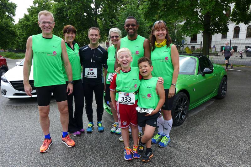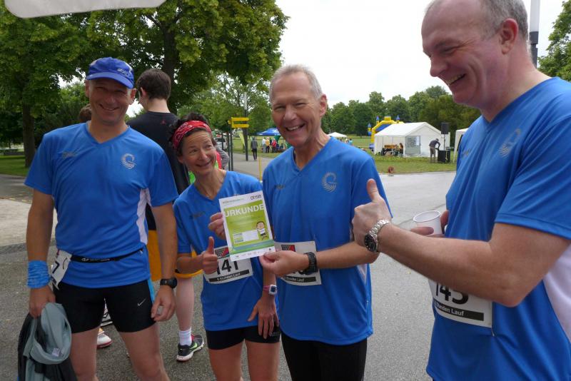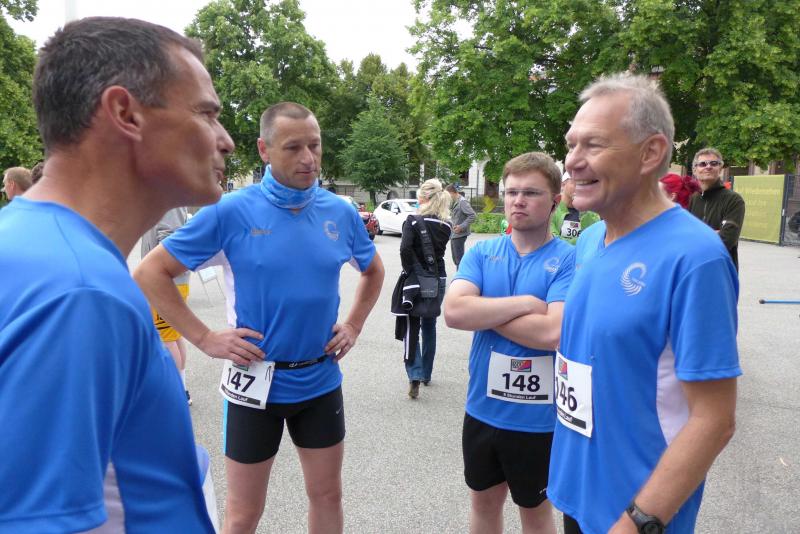 In leuchtend grünen Laufshirts starteten die Familien Eisfeld und Lampe für die Staffel „LEX Laufexperten“. Das Shirt der „Clopay and friends“-Staffel trug ein weiteres Achter-Team, bestehend aus vier Gaensefurther Sportlern und vier Mitarbeitern. Zu ihnen gehörte auch der Clopay-Firmenchef Stephan Meißner, dem natürlich die allererste Runde nach dem Startschuss vorbehalten war. Unter tobendem Applaus wurde der erste Wechsel auf den nächsten Staffelläufer vollzogen, die Routiniers wussten wie sie die Stimmung ordentlich anheizen konnten. Meißner, ehemaliger Tae-Kwon-Do Sportler, der in seiner Freizeit nur selten die Laufschuhe schnüren kann, hatte sich mindestens zwei Einsatzrunden vorgenommen. Bald waren alle Staffelteilnehmer einmal gelaufen, schon ging es wieder von vorne los. Die eingangs geplante Strategie, mehrere Runden hintereinander zu laufen und erst später auf den nächsten Teilnehmer zu wechseln, wurde schnell wieder verworfen. Nach der Laufrunde tat die Erholung gut, so dass der nächste Einsatz fast wieder im Sprinttempo absolviert werden konnte. Nun rief die berufliche Pflicht und Meißner beendete nicht ohne Stolz nach sechs absolvierten Einsätzen seine Teilnahme.